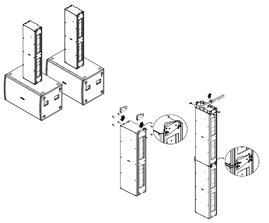 Engineered for touring, stadiums, auditoriums, and large clubs, GPXA can be deployed in a vertical stack (with the array mounted on the subwoofer), in a flown configuration using the GH-FLY accessory, or placed on the ground via the GH-BASE.