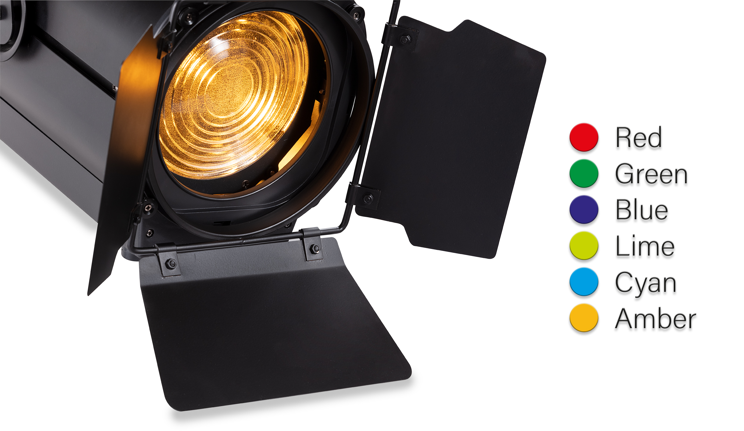 The addition of Amber, Lime and Cyan to RGB basic colors allows infinite color palette and to adjust the white temperature from 2000°K up to 8500°K.