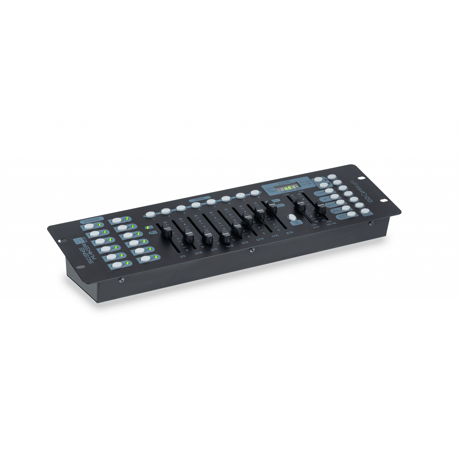 SCENEMAKER 1216 PLUS is a universal intelligent lighting controller. It allows you to manage up to 12 fixtures composed of 16 channels each (192 channels in total), and up to 240 programmable scenes. 6 chases can contain up to 240 steps composed by the saved scenes (the steps) and in any order. Programs can be triggered by music, MIDI, automatically or manually. On the surface you will find various programming tools such as 16 universal channel sliders, quick access scanner and scene buttons, and a LED display indicator for easier navigation of controls and menu functions.