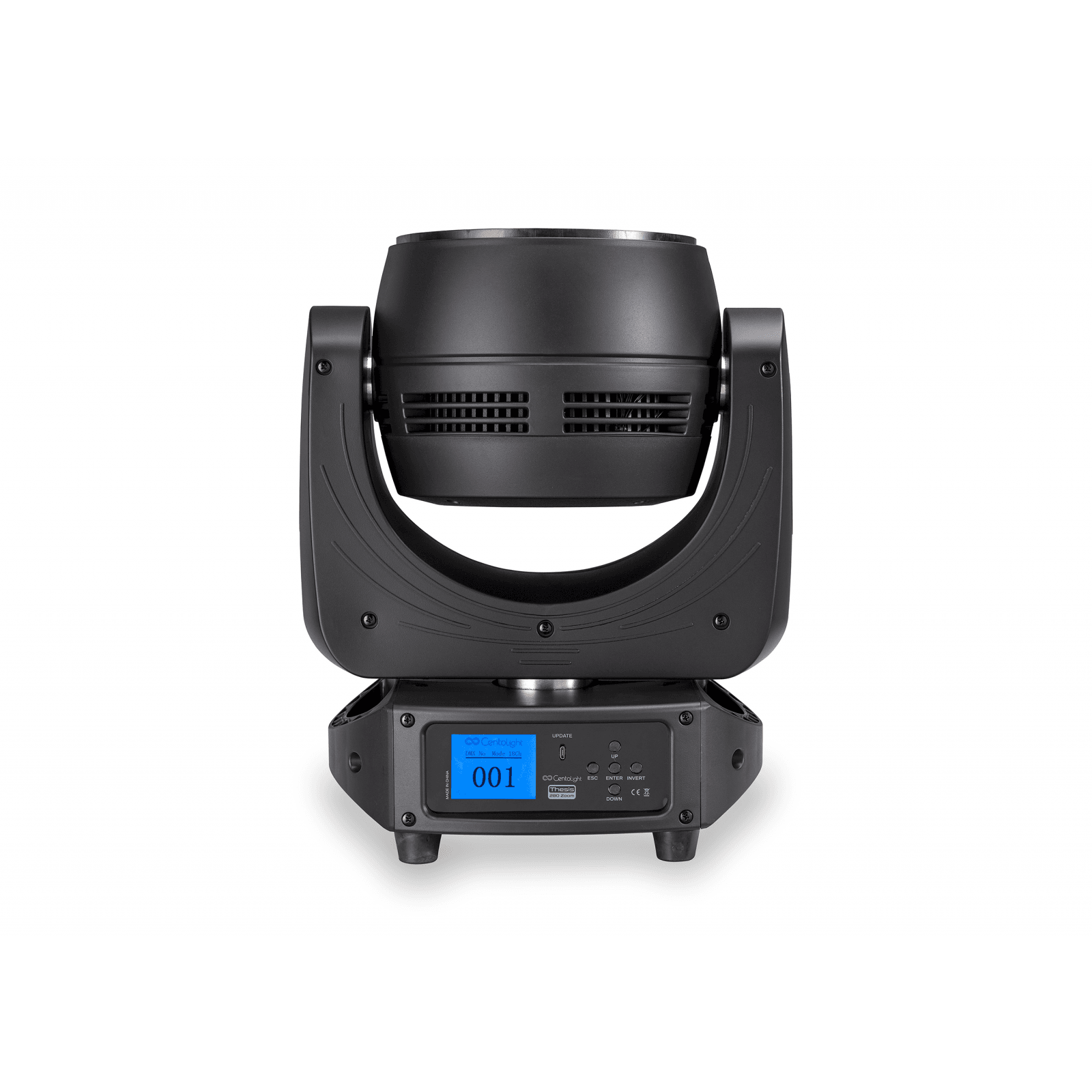 The light beam ranges from 4.5° to 45°, thanks to the ZOOM function controlled by three motors simultaneously, which give an extremely soft and silent adjustment. The quad-color mixing system, the adjustable color-temperature, the accurate and linear dimmer, combined with the sophisticated control of the single pixels, make the new THESIS 280 ZOOM moving head a valid tool to enhance the creativity of the most demanding light designers.