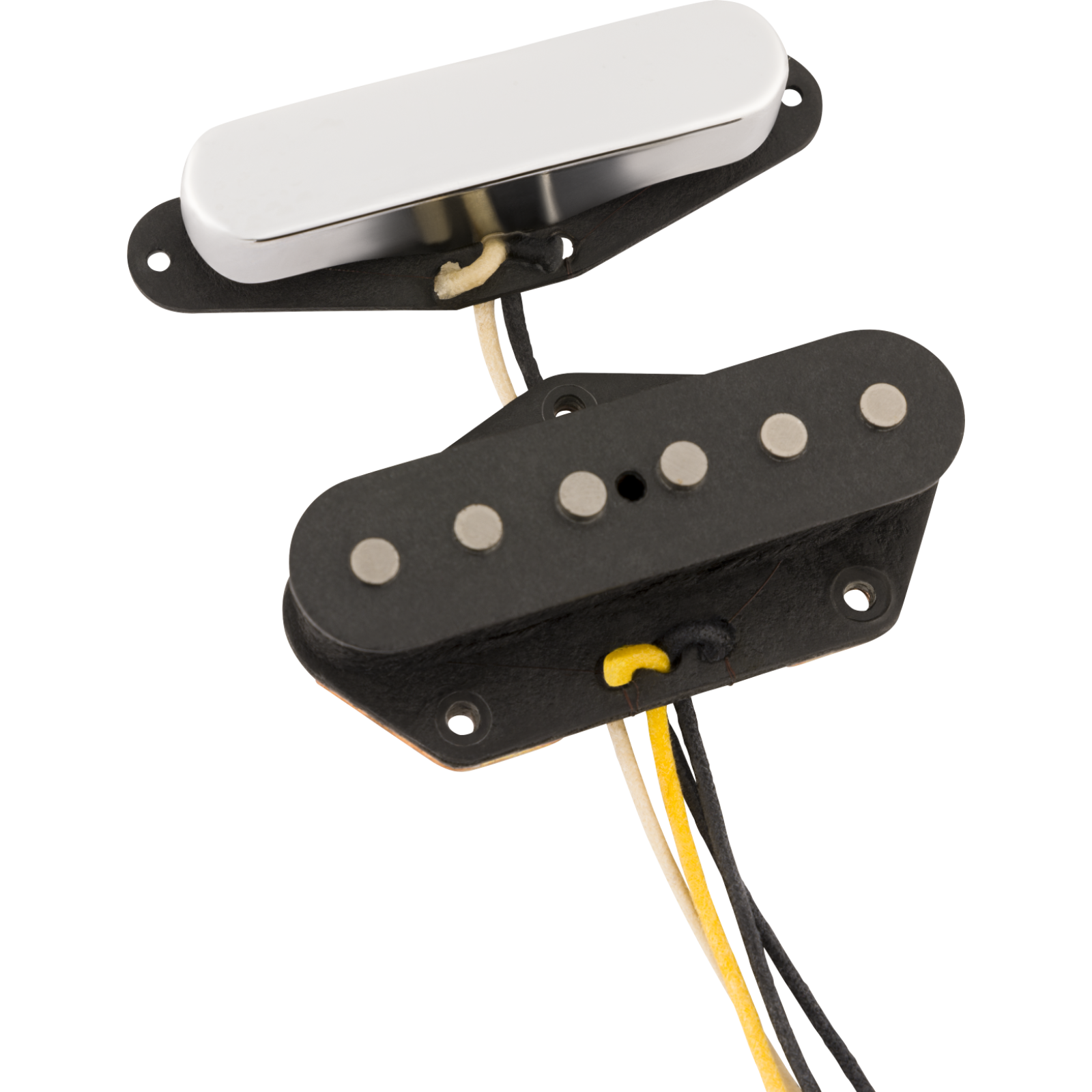 An essential part of the recipe from the Whiteguard era, the Fender® Custom Shop ’55-’56 Telecaster® pickups are an accurate 1:1 recreation of the pickups used in those instruments. These pickups have all the grunt and snarl of the originals, thanks to the hand-beveled, staggered alnico 5 magnets in the bridge pickup. The neck pickup uses alnico 3 magnets for sweet midrange and tight bass.