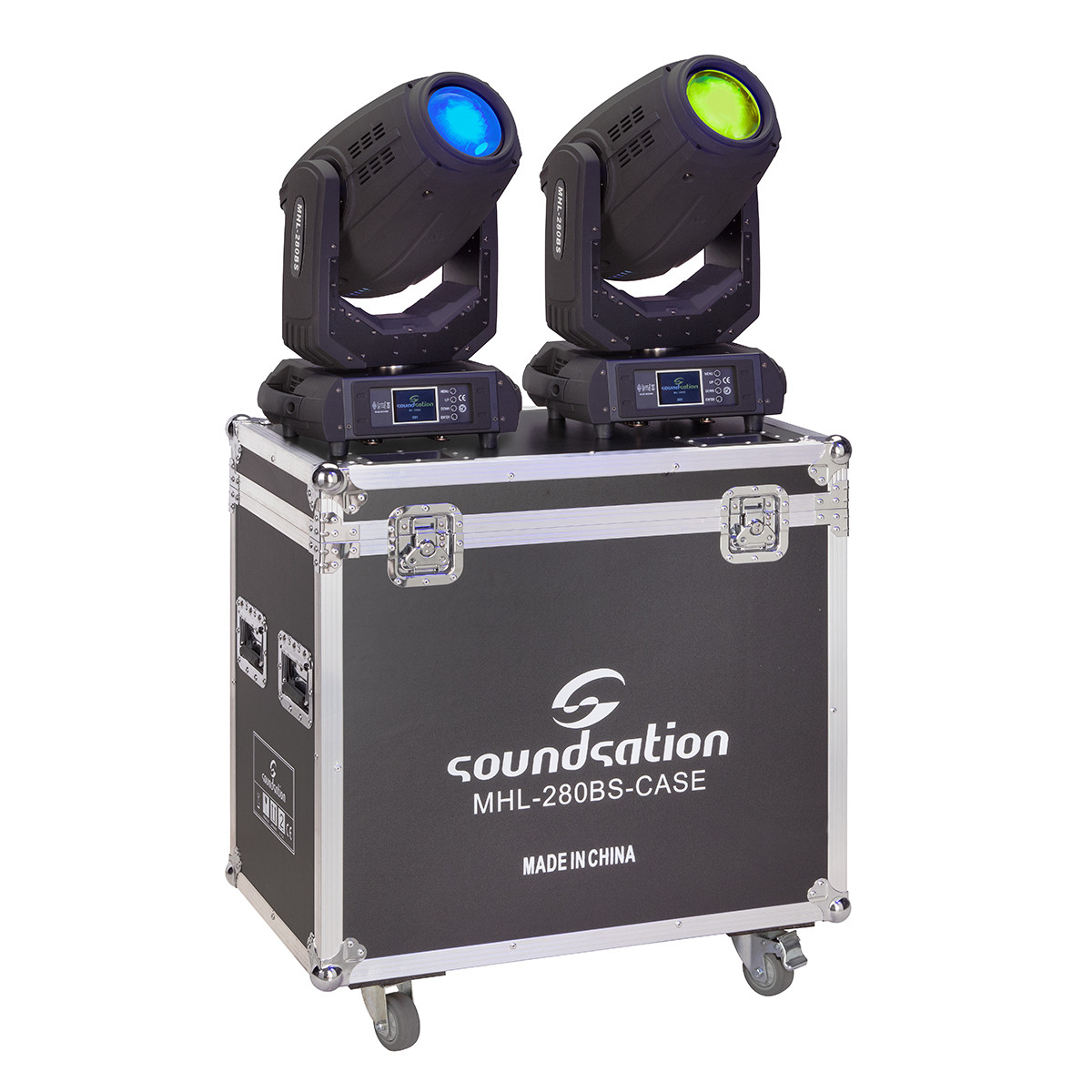 MHL-280BS offers to professional users a palette of extremely wide functions. 2 gobo wheels (one with 9 interchangeable and rotating glass gobos; the other with 13 metal gobos), 2 prisms (one 8-facet, the other 6-facet) with frost effect, 1 color wheel with 14 colors + white, linear 0-20° focus, strobe effects, adjustable wash effect and an advanced user interface with touch-screen LCD, make this fixture real amazing. DMX control (with 5-pin and 3-pin connectors) is 16 or 24 channels.