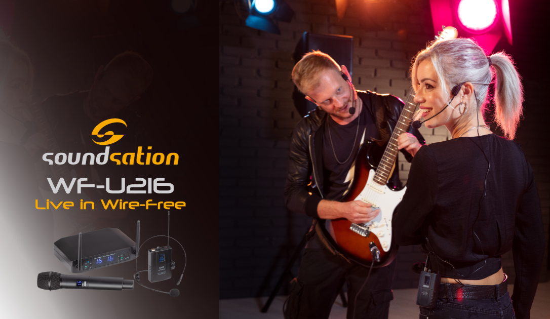 The WF-U216 is a UHF dual wireless microphone system with 16 channels each. Its main characteristics are reliability, audio quality and extreme simplicity of use. It’s been designed for all those professionals who need a ready-to-use tool, always. Despite its minimalist look, the WF-U216 is a concentrate of technology, capable of integrating a high-quality microphone preamp stage, a DSP-based audio processing, a PLL synthesis stage, and other functions in a single chip. Compared to analog systems, it significantly improves the stability and reliability of the FM modulation section, the AF and audio stages, offering professional level music performance. The WF-U216 is also equipped with the IR synchronization system, for quick coupling between the receiver and transmitter. Both the hand transmitter and the pocket transmitter can work with AA alkaline or rechargeable batteries. The handheld transmitter also allows direct charging of the batteries thanks to the supplied USB cable. The quality of the cardioid capsules of the handheld transmitter (dynamic) and of the headset (condenser) are professional.