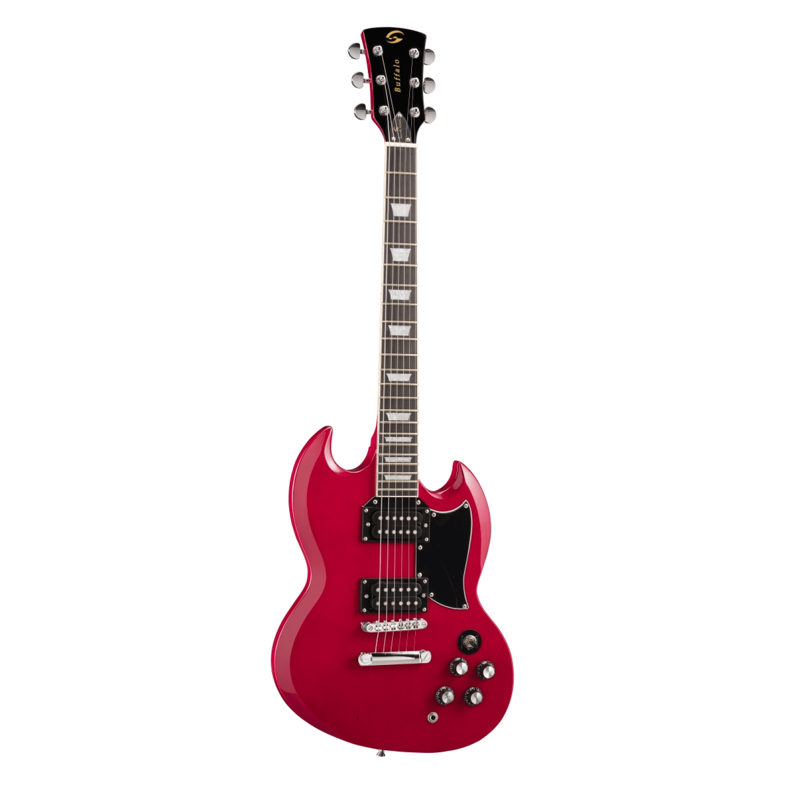 Nessun dubbio: la Buffalo Pro fa rima con Rock! Corpo in basswood solido per un timbro corposo e massima resistenza, manico set-in in mogano per un sustain maggiorato e tastiera 22 tasti in palissandro resi facilmente accessibili dalla spalla mancante. I 2 humbucker scoperti sono garanzia di suono ruggente e definito, mentre il selettore a 3 vie e i controlli volumi/tono indipendenti per ogni pick up permettono di spaziare dal blues al rock, senza dimenticare i generi dove è richiesta maggior grinta. Comprimere il testo