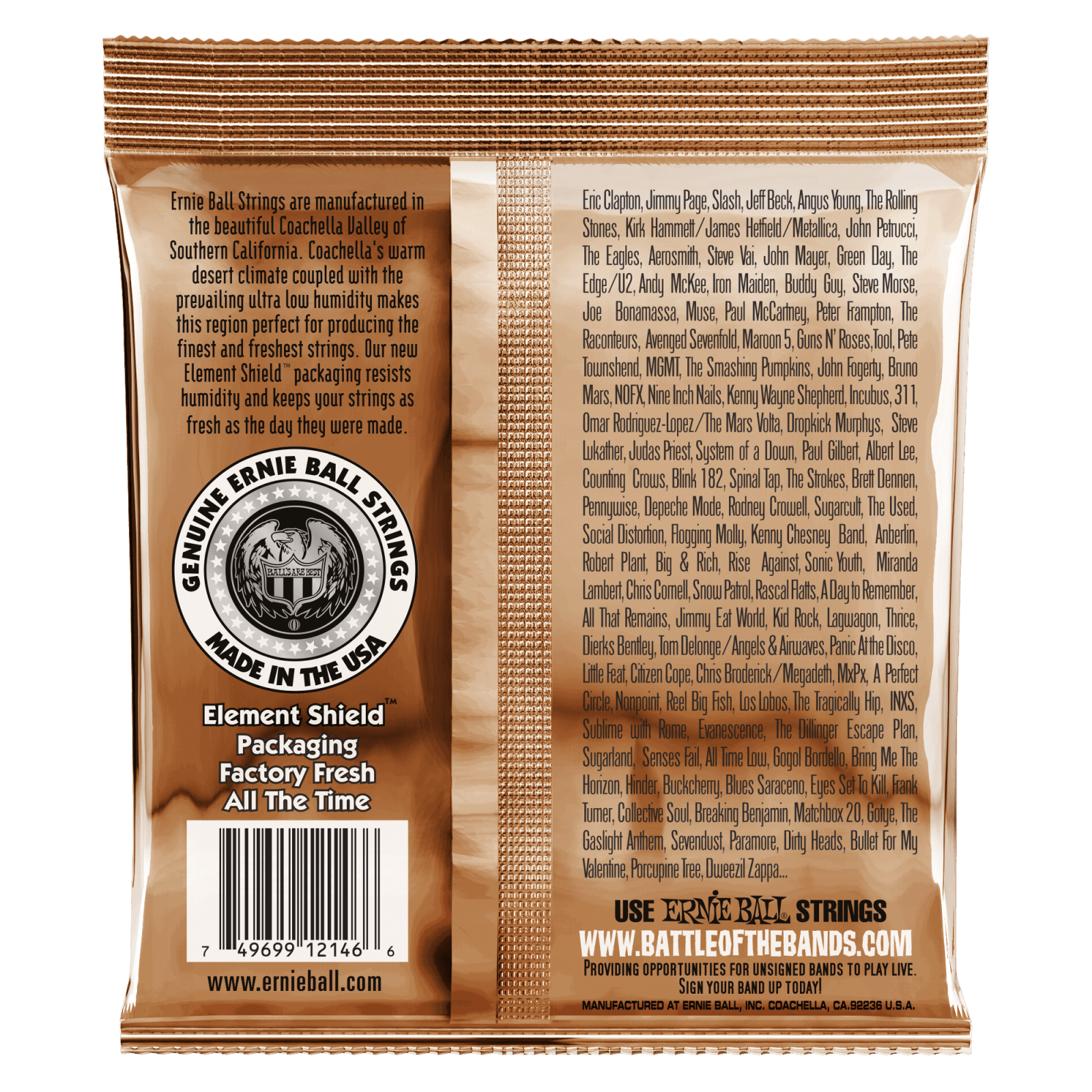 Le corde per chitarra acustica Ernie Ball Earthwood Phosphore Bronze sono realizzate per il 92% in rame, 7,7% in stagno e 0,3% in filo di fosforo avvolto attorno a un filo d'acciaio a forma esagonale rivestito di stagno. Queste corde per chitarra hanno un colore arancione chiaro, oro e forniscono un suono morbido e squillante, con un'eccellente chiarezza.