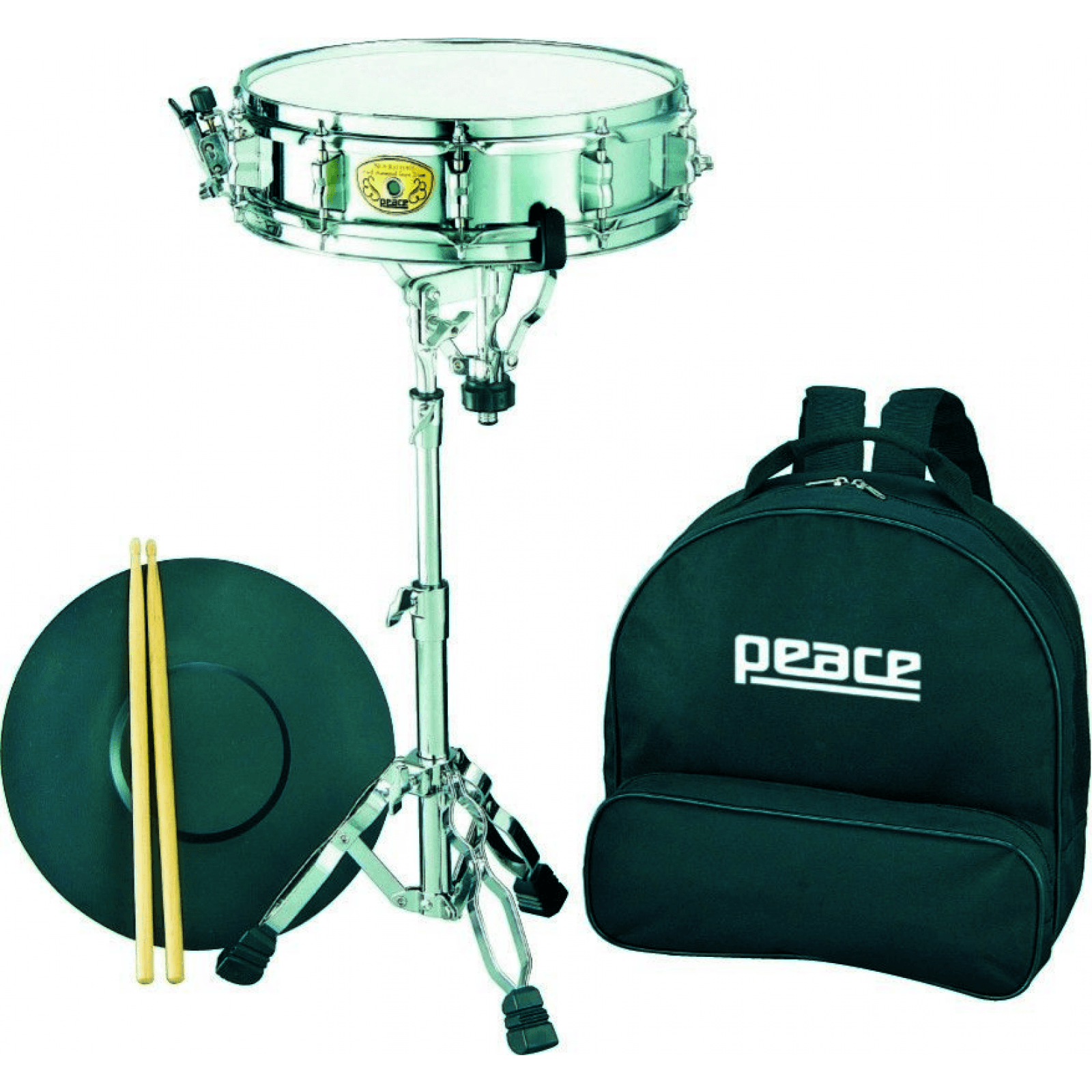 Il più compatto degli snare kit PEACE, con un rullante cromato 13” x 3,5” a 8 blocchetti. Equipaggiato con stand reggirullante, practice pad, chiavi manutenzione, bacchette e borsa. Attacco esplosivo e suono molto controllabile.