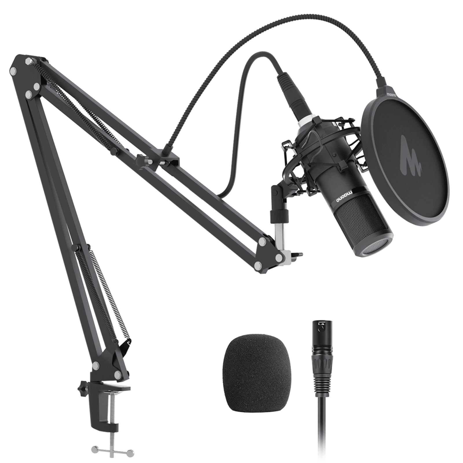 Il microfono viene fornito con molti accessori come ad esempio il braccio a giraffa realizzato in lega di alluminio che ne garantisce una lunga durata. A corredo del microfono vengono forniti anche un filtro anti-pop, un cappuccio antivento, un supporto anti vibrazioni, un morsetto per fissaggio ad un tavolo ed un cavo di tipo XLR.