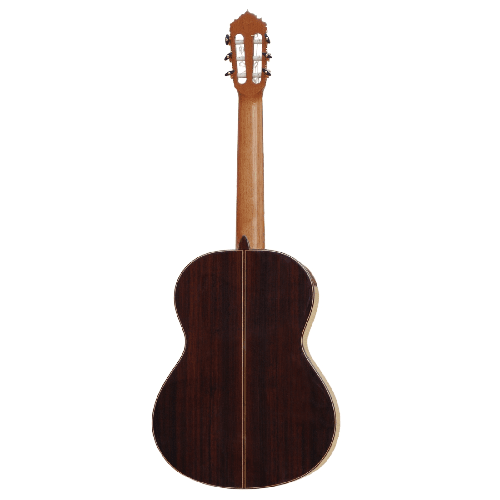 Chitarra classica professionale da concerto con tavola armonica in cedro rosso massello, fondo e fasce in palissandro indiano massello prodotta con metodo artigianale interamente in Spagna con legno massello altamente selezionato. Garanzia ufficiale 3 anni del produttore MANUFACTURAS DE ALHAMBRA.