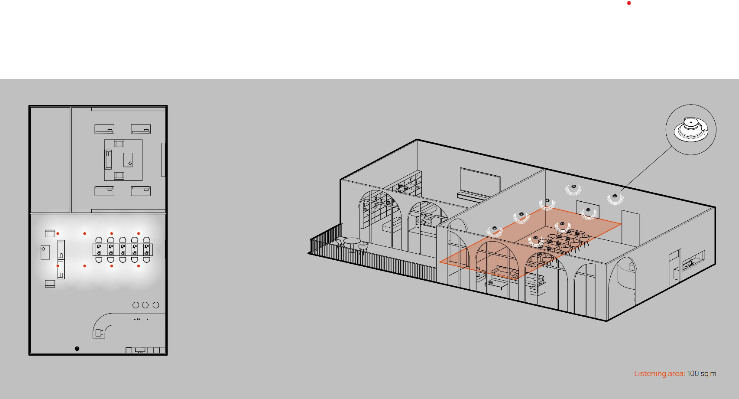 La configurazione a tensione costante consente la selezione della potenza fino a 16W a 100V, facilitando il collegamento in parallelo di molti diffusori sulla stessa linea, per impianti scalabili e semplici da realizzare. È compatibile con tutti gli amplificatori 70/100V.