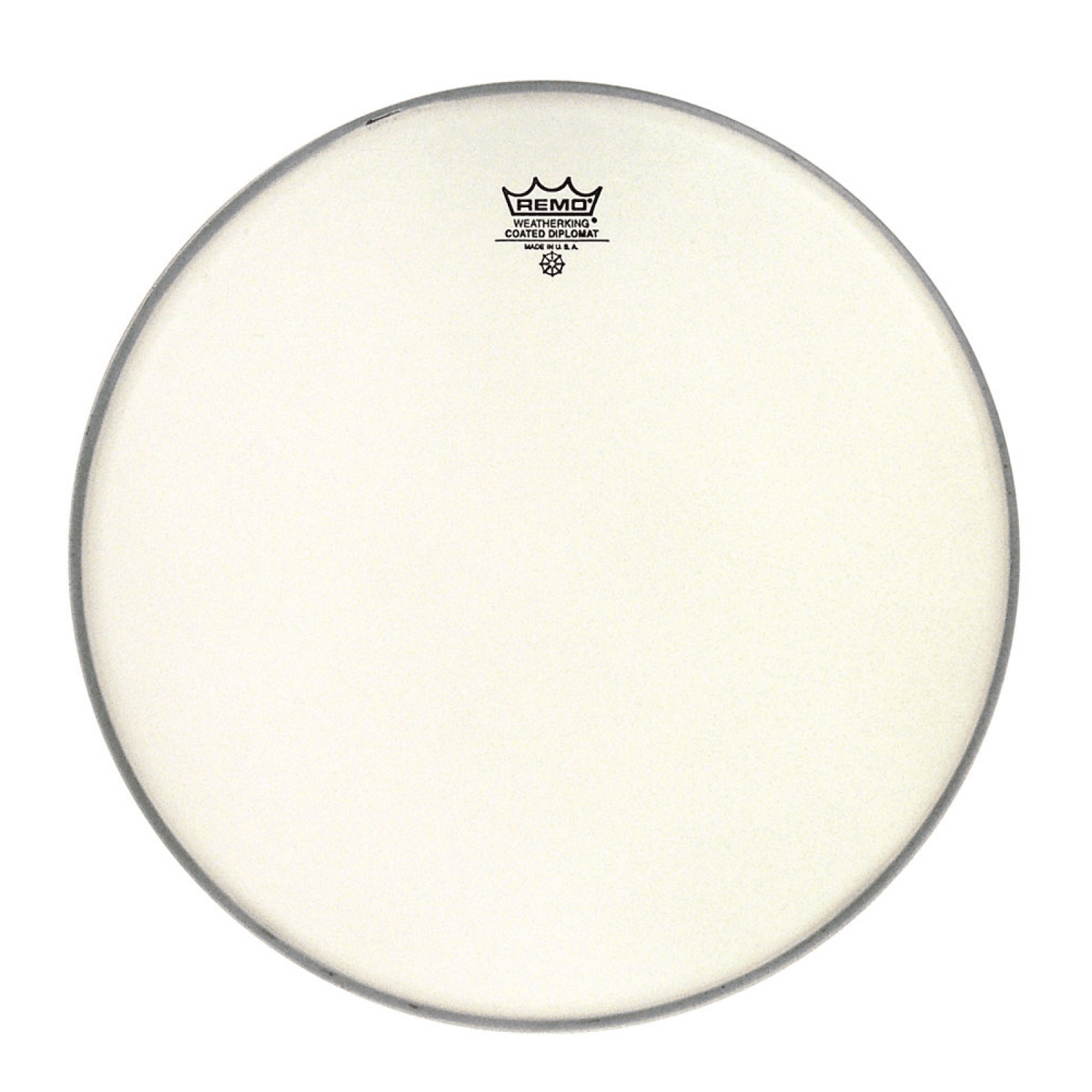 La pelle sabbiata offre un suono leggermente più caldo rispetto alle pelli trasparenti. Le pelli Coated sono note per i loro toni caldi e luminosi, per la risonanza e il sustain. La serie Diplomat Coated® offre un suono leggermente più caldo rispetto alla serie Clear Diplomat® ed è scelta per accentuare la risposta sul rullante.