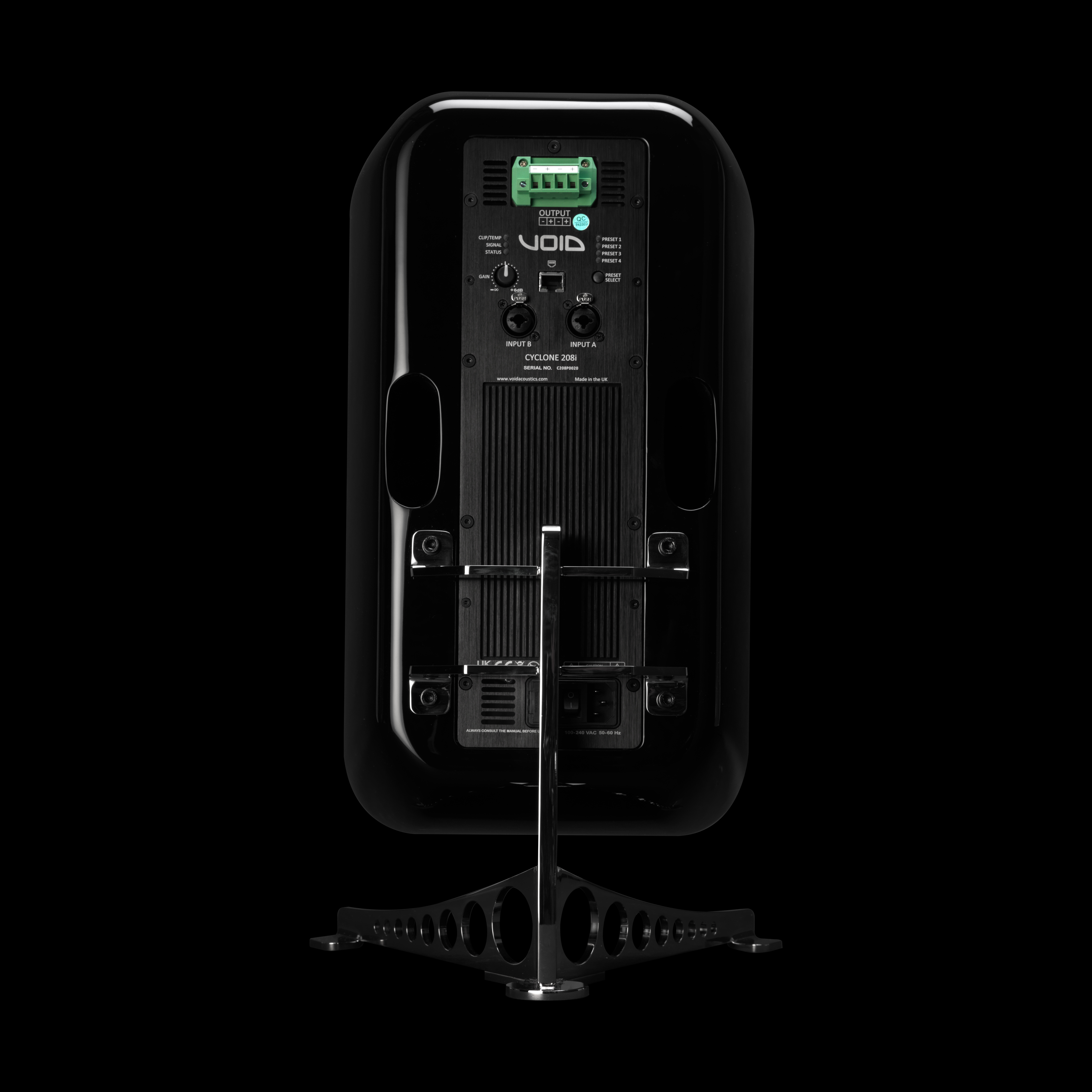 DSP a 24 bit / 48 kHz con 4 preset interni richiamabili, compatibile con la libreria di preset Void e completamente gestibile da remoto tramite software ArmoníaPlus via connessione Ethernet: consente un controllo approfondito di equalizzazione, crossover e protezioni dinamiche, adattando il comportamento del sistema a diverse configurazioni o ambienti d’ascolto.