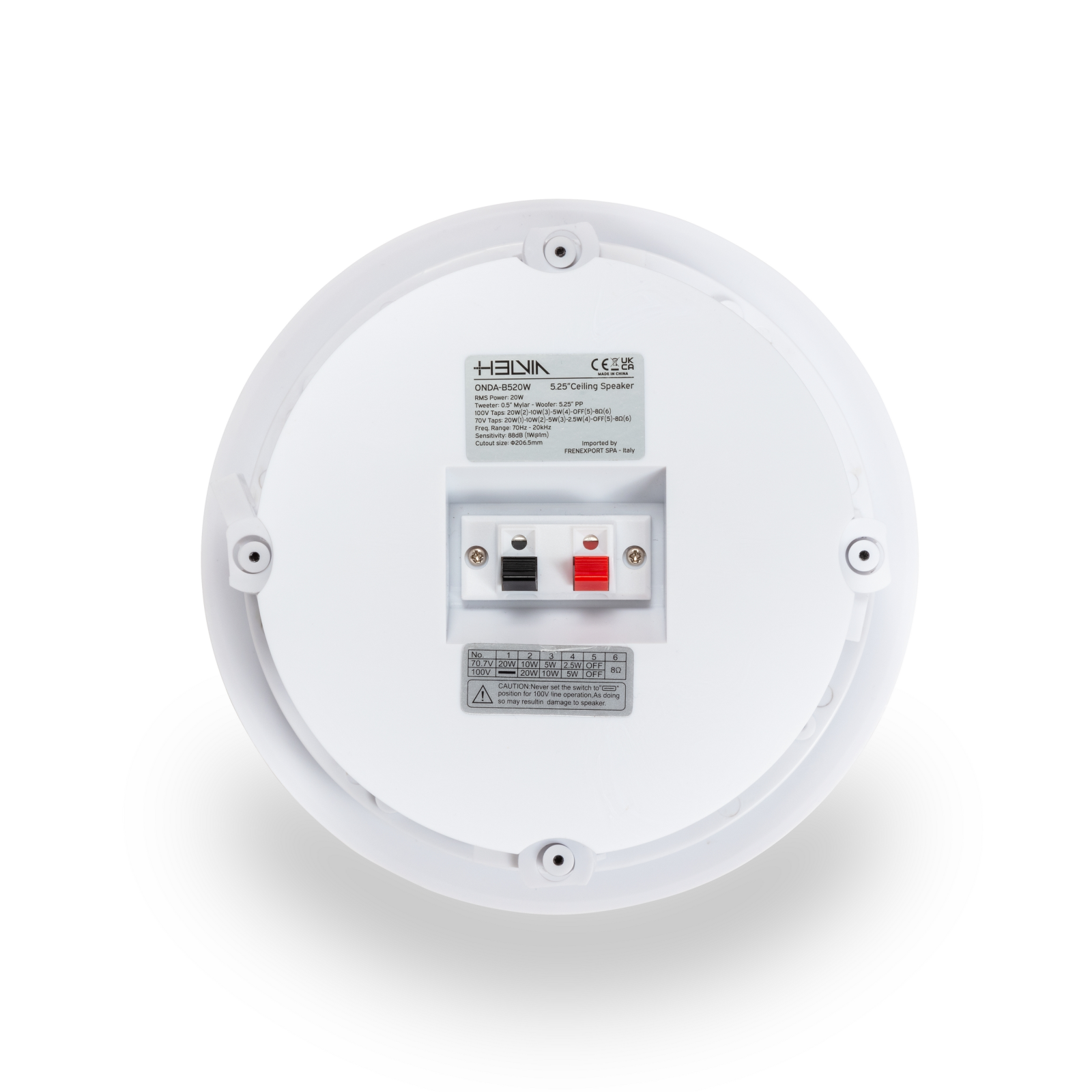L'installazione è semplicissima, grazie al sistema di montaggio rapido con 4 viti. Queste viti sono nascoste dietro la griglia e offrono un design elegante e minimalista. I trasformatori di linea integrati consentono l'utilizzo con linee a 70/100 V e offrono tre prese di potenza più 8 ohm per adattarsi meglio a diverse configurazioni di altoparlanti e potenze di amplificatori. Sono disponibili in colore bianco, ma possono essere verniciati in qualsiasi colore.