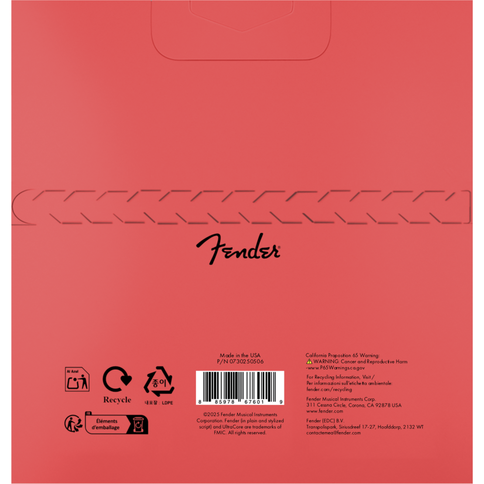 • Terminali a sfera colorati nei classici colori Fender per un cambio corde rapido e senza sforzo