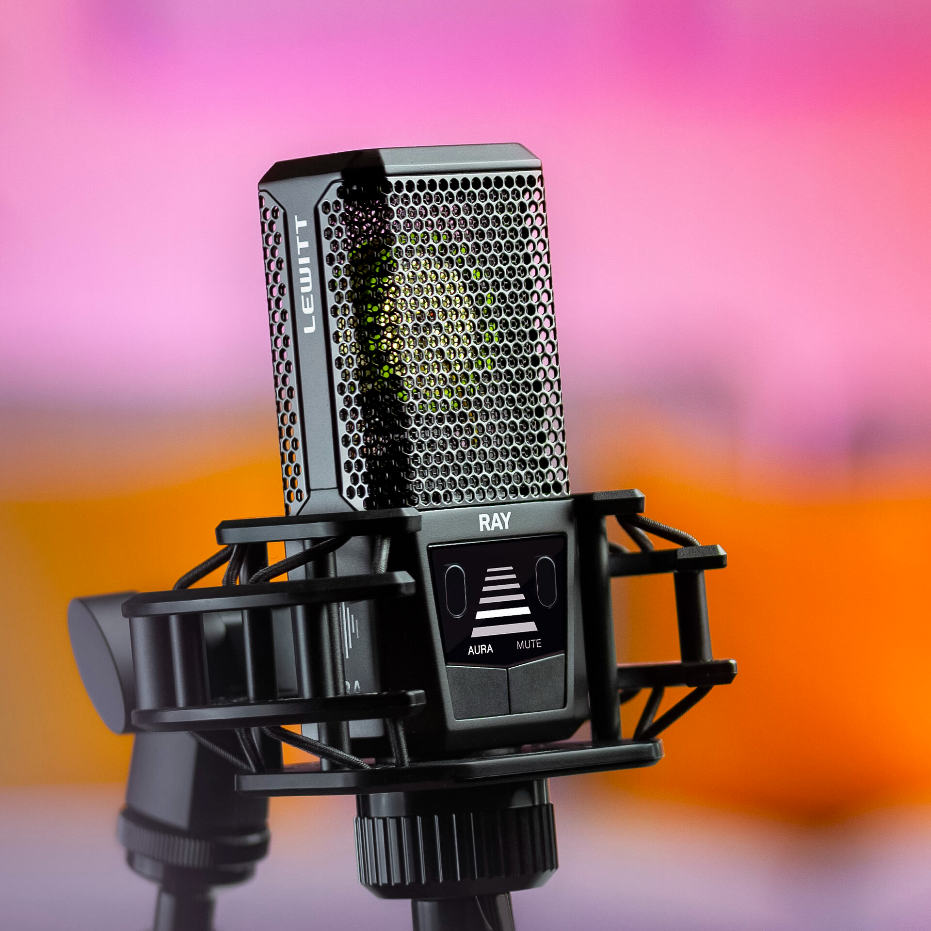 Partiamo dall’inizio! RAY è di fatto un microfono a condensatore di alta qualità adatto alla ripresa di strumenti e voce ed è il primo microfono a utilizzare la tecnologia basata su sensori AURA di Lewitt. Questa tecnologia misura continuamente la distanza dalla sorgente al microfono, adattando così i livelli e il tono in tempo reale. Ciò permette al performer di concentrarsi esclusivamente sul suo lavoro ottenendo sempre risultati impeccabili, che si tratti di tracce vocali, podcast, contenuti di streaming live o produzione musicale in generale.