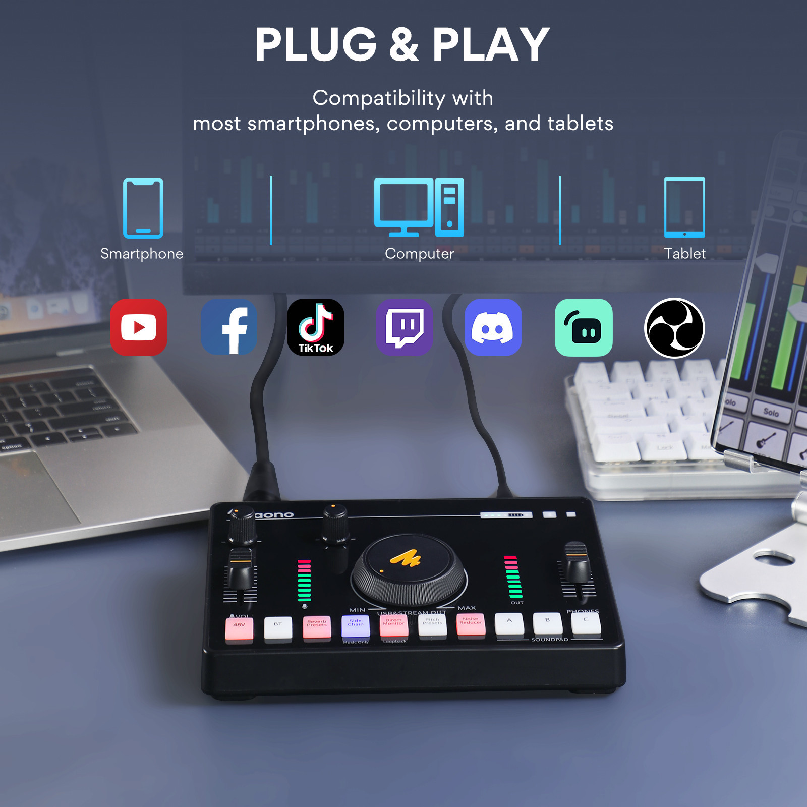 La console audio Maonocaster AMC2 Neo è l'ultima aggiunta alla serie Maonocaster. Presenta un design semplificato e compatto che ne determina la facilità di uso e migliora la portabilità senza compromettere la qualità audio.