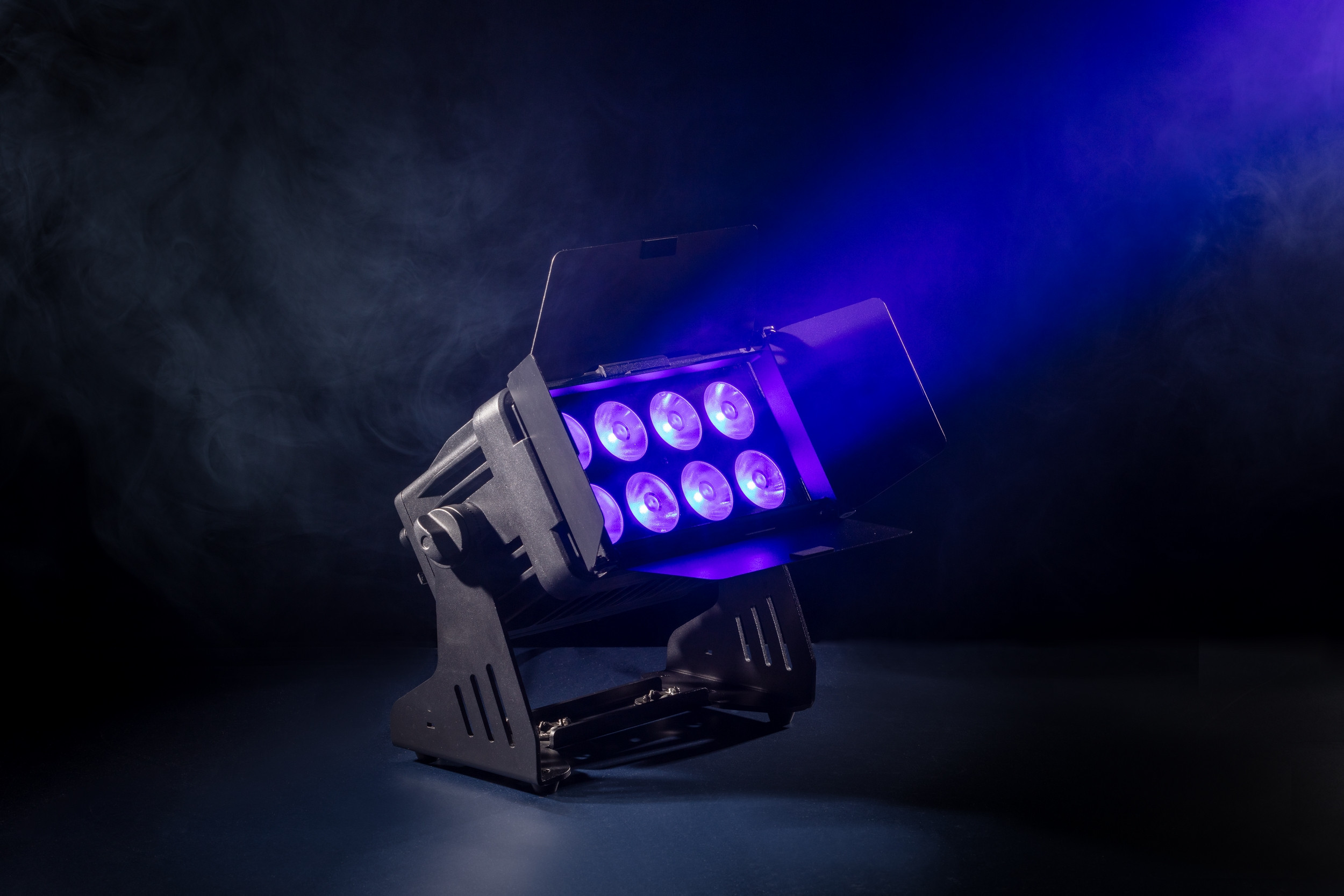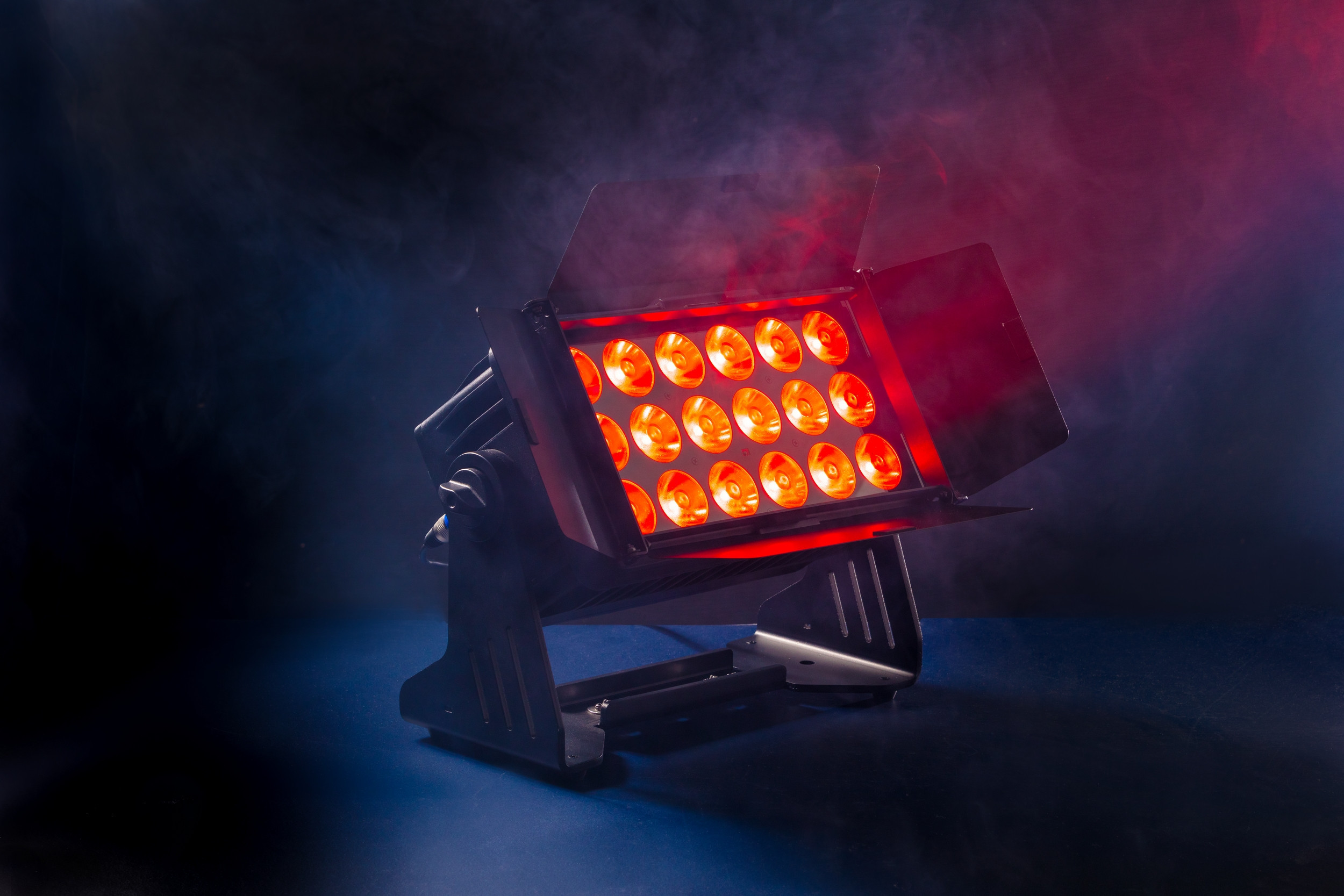 Dotati di LED RGBW 4-in-1 da 15 W (8 LED per il MoodMaster 8 e 18 LED per il MoodMaster 18), questi proiettori offrono un’illuminazione uniforme e potente, ideale per sfondi, strutture architettoniche e palchi. Il fascio standard da 10° può essere personalizzato con un diffusore frost (40°) o una lente asimmetrica (10° x 60°) per adattarsi a una varietà di esigenze. Entrambi i modelli includono nel packaging le barndoor che permettono di limitare il fascio di luce e illuminare solo ciò che serve senza sprechi o perdite di luce inutili.
