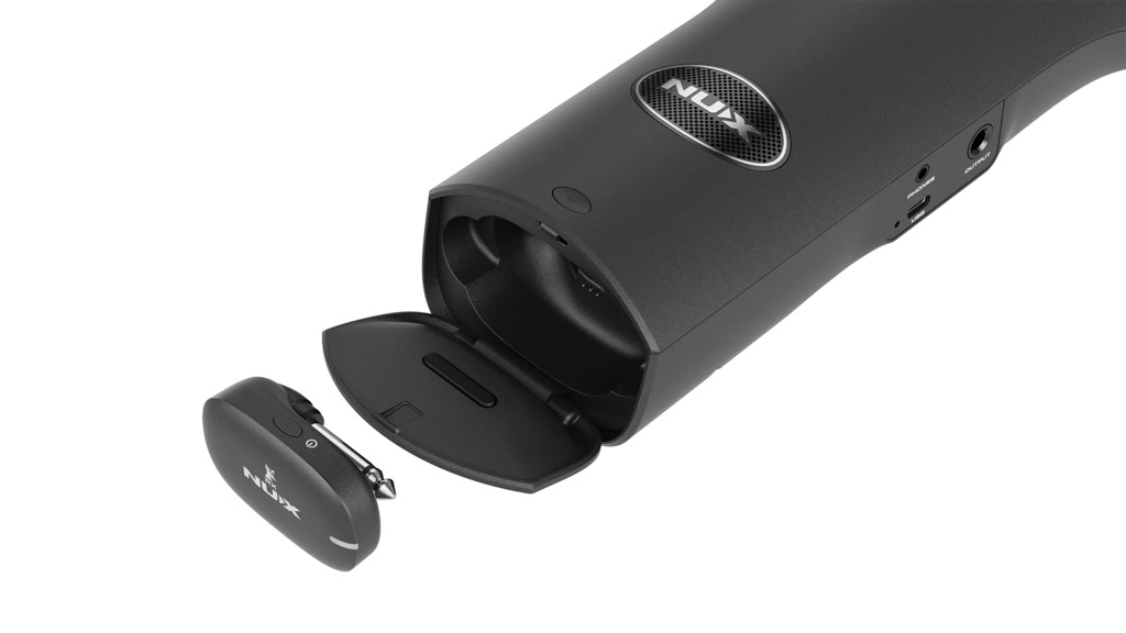 Il NES-1 stesso è un trasmettitore wireless e, nella parte inferiore dello strumento, NUX ha progettato uno scomparto magnetico per il ricevitore wireless, che serve anche per ricaricarlo! Basta estrarre il ricevitore, attivare la funzione wireless, collegarlo a un amplificatore o a un mixer e iniziare a suonare in modalità wireless fino a 4,5 ore con una singola carica.