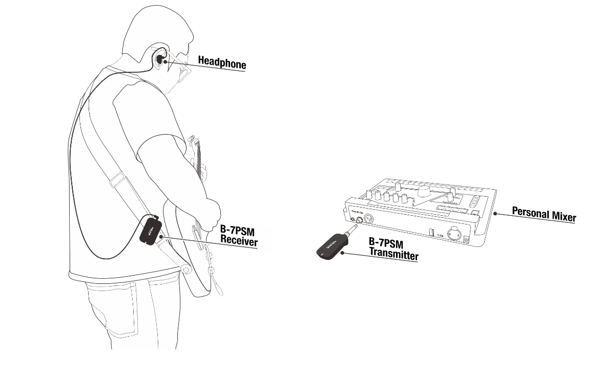 B-7PSM offre una trasmissione audio STEREO: perfetto per lavorare con mixer personali professionali per eseguire il pan delle tracce come si desidera sul palco, in studio o durante le prove. La qualità audio è eccellente, con una gamma dinamica di 92dBA e una risposta in frequenza da 20 a 19K Hz.