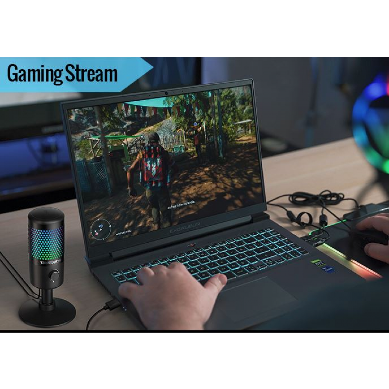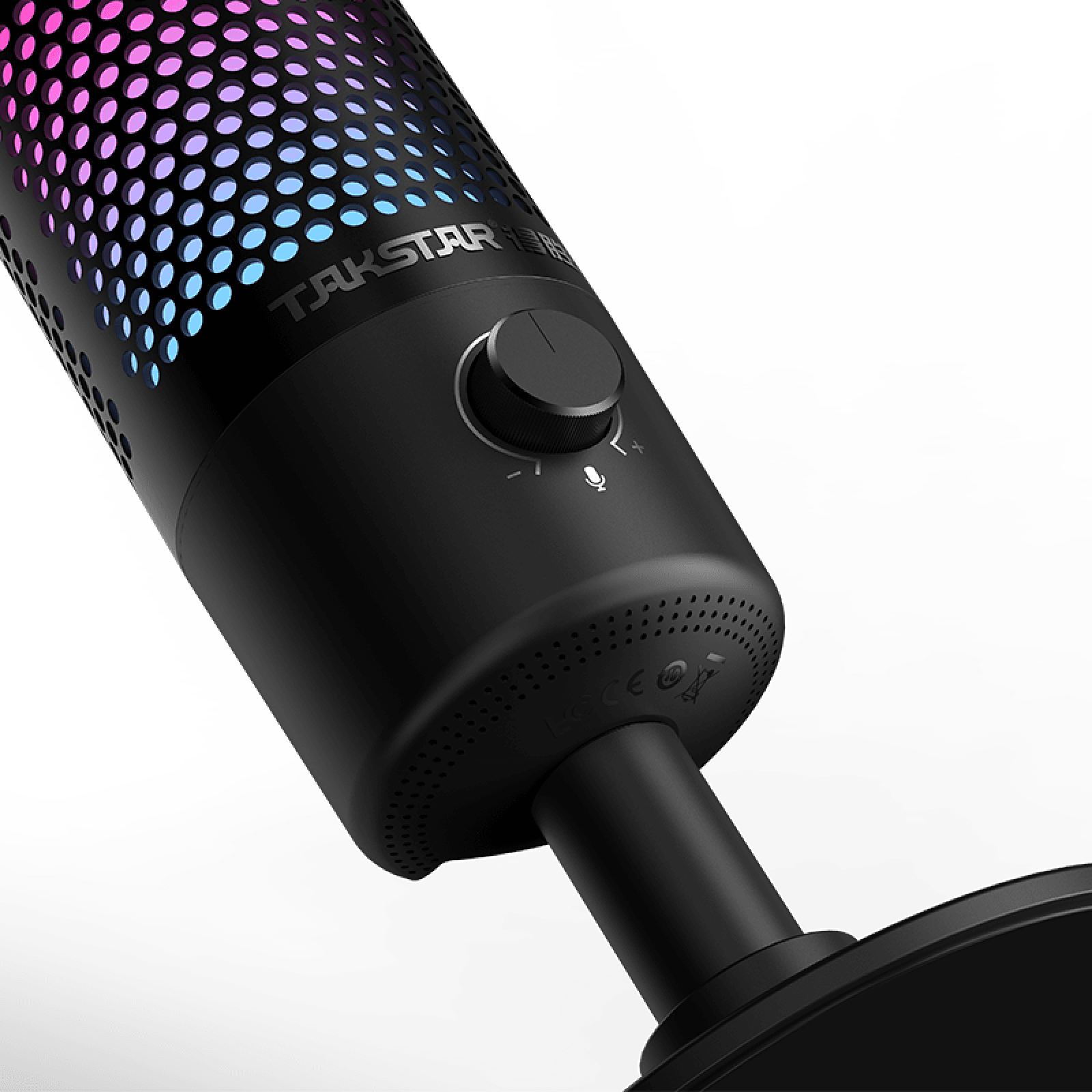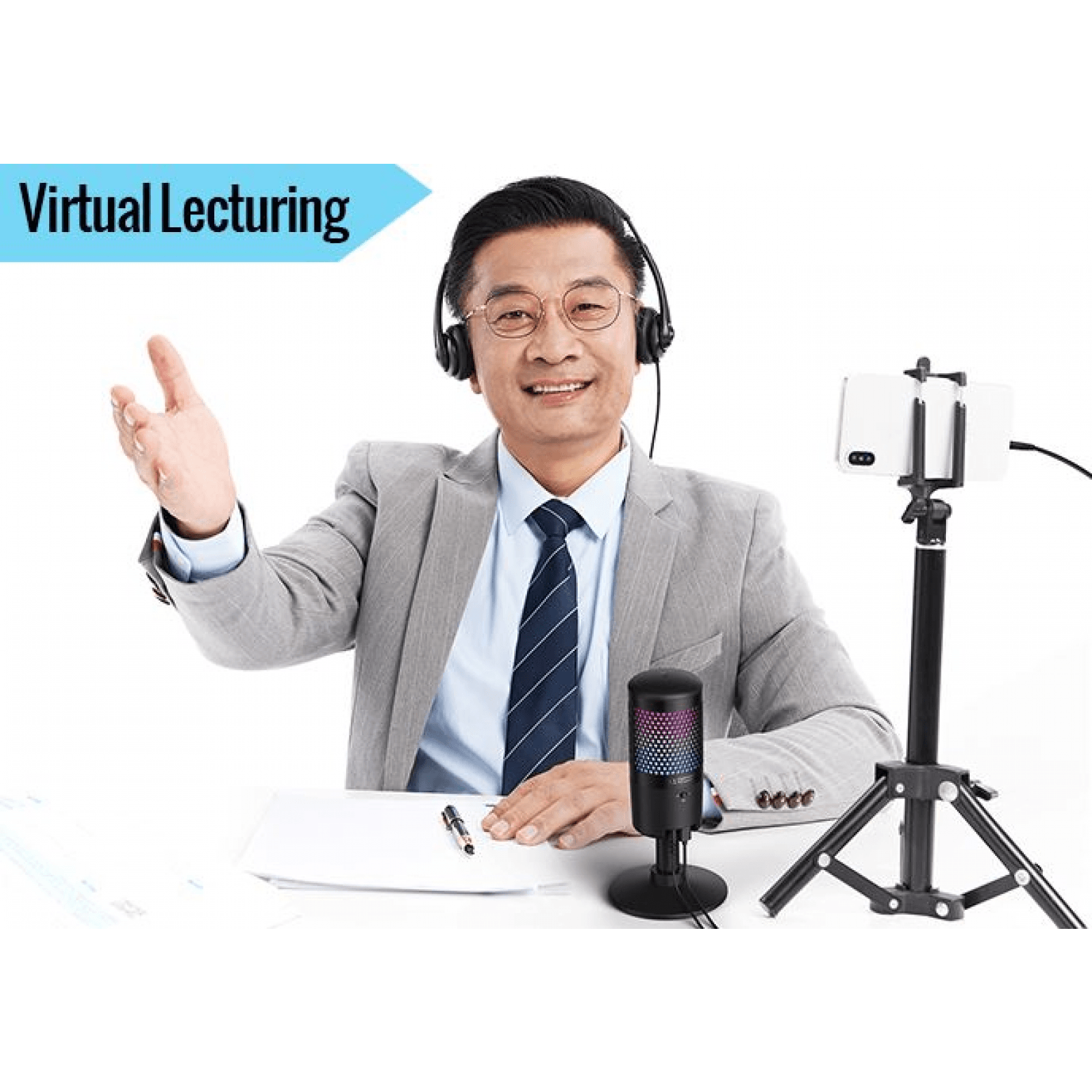 Microfono digitale USB con effetti LED RGB progettato per lezioni virtuali, registrazione di corsi, chat online e live streaming di giochi.