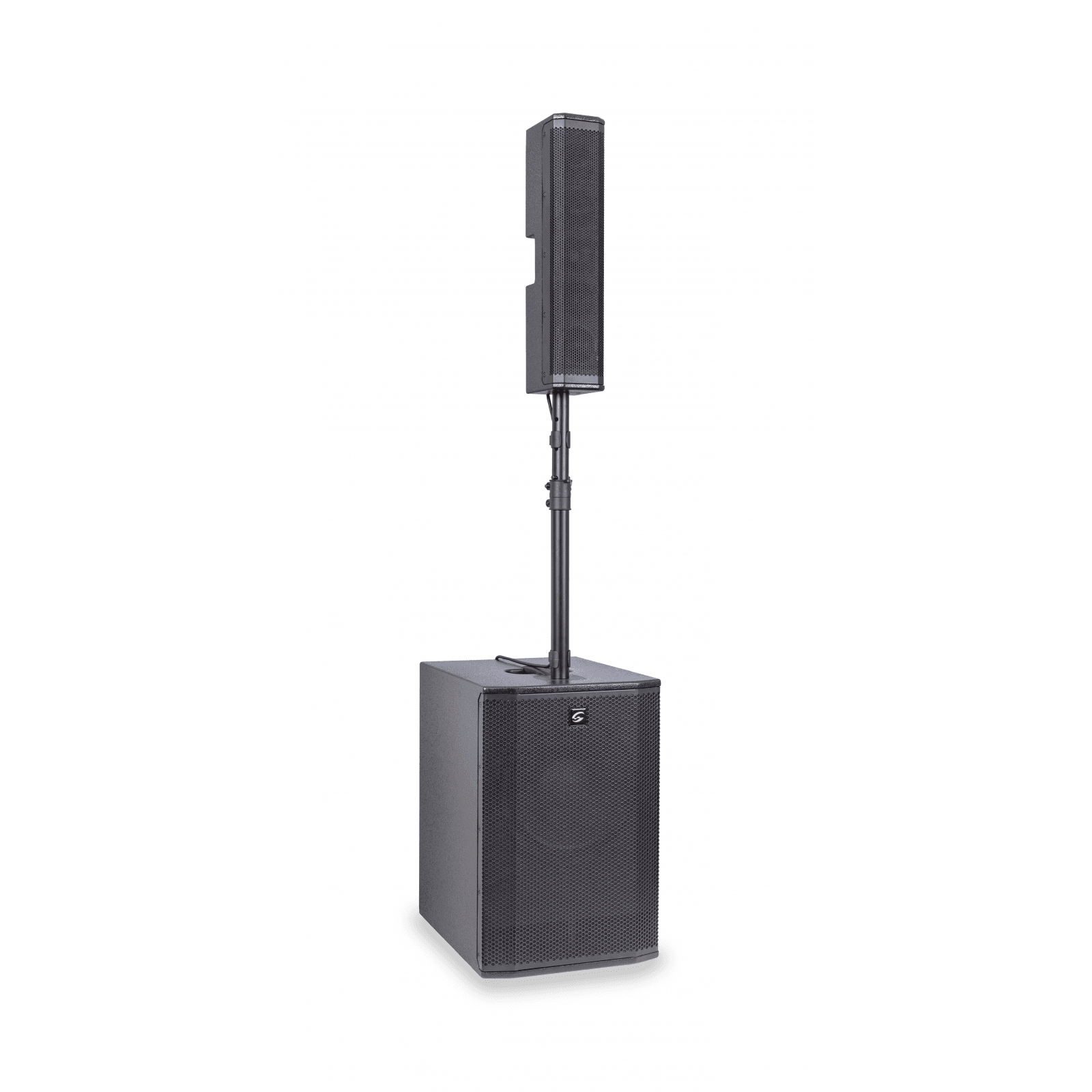 Comprimere il testoIl sistema è composto da un woofer da 12” che lavora come subwoofer. La colonna è dotata di quattro driver full-range da 3,5” e un driver a compressione da 1” con guida d’onda simmetrica. Ne risulta un suono bilanciato e ricco su tutto lo spettro sonoro.