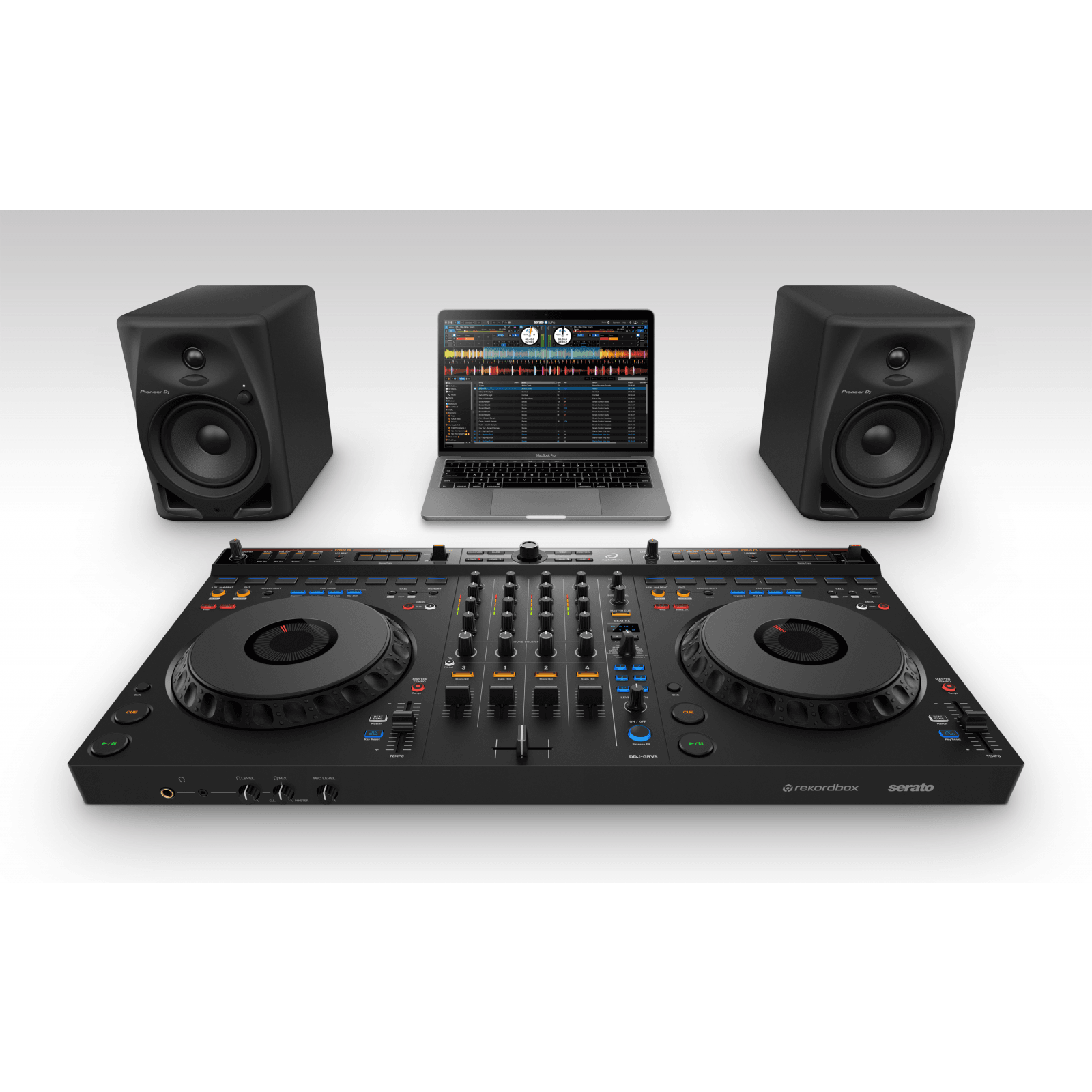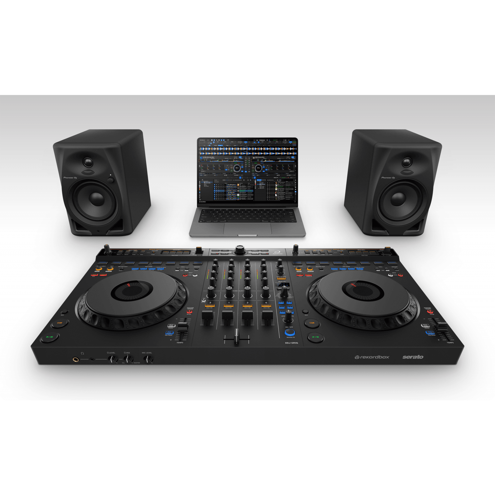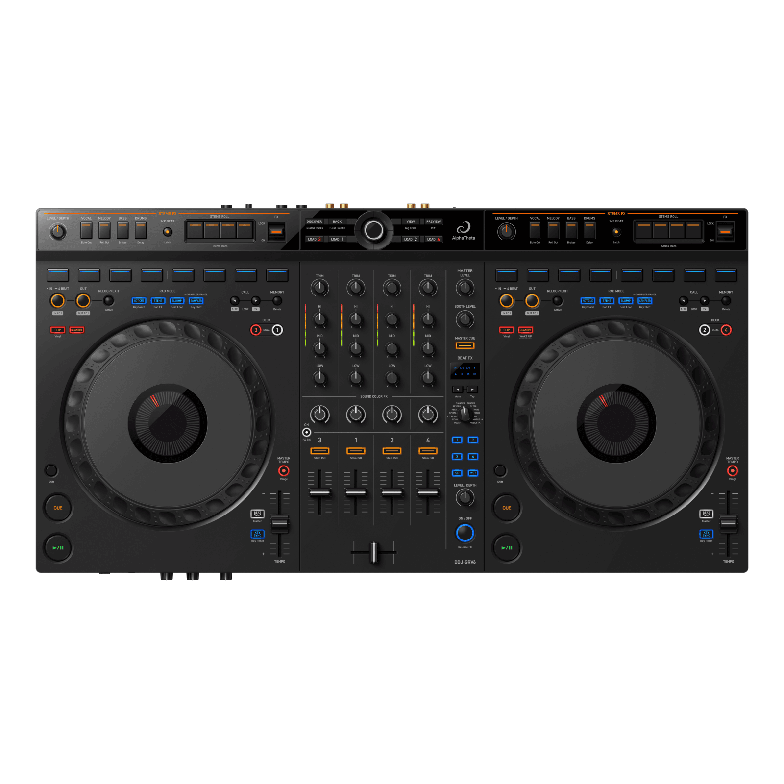 Il DDJ-GRV6 è dotato di grandi jog wheel ideali per lo scratching, di 8 Performance Pad posizionati sopra le jog wheel – proprio come nel multilettore di punta CDJ-3000 – e di Beat FX dal DJM-A9 nella sezione mixer. Ciò significa che potrai suonare con una sensazione simile a quella che si prova utilizzando un’apparecchiatura standard da discoteca ed esibirti in modo dinamico combinando uno scratching espressivo con tecniche che comprendono pad ed effetti, perfette per i set da discoteca.