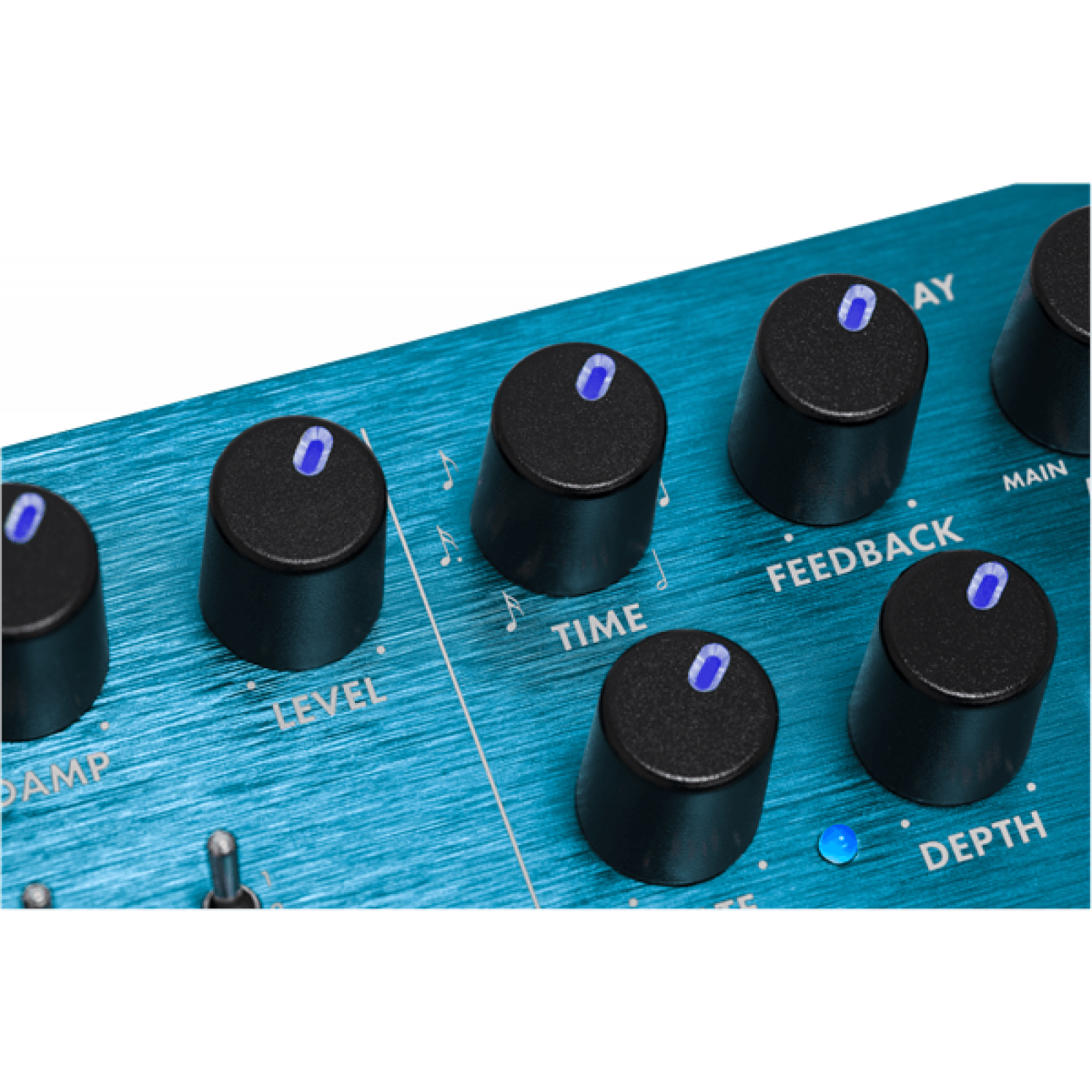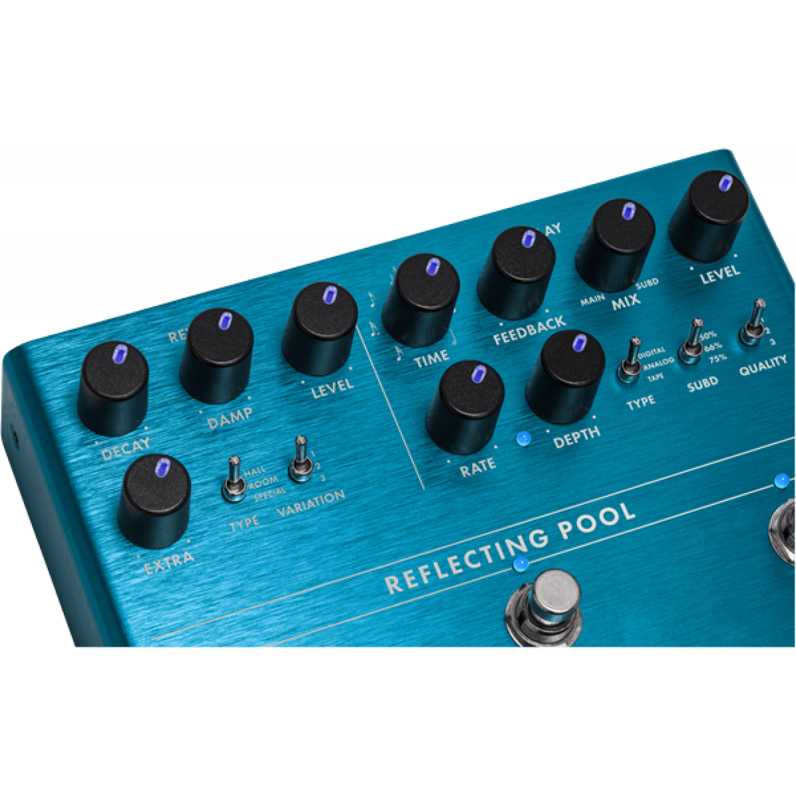 La relazione tra gli effetti basati sul tempo, come delay e reverb, è fondamentale per il loro corretto funzionamento. Il pedale Reflecting Pool Delay/Reverb combina questi due effetti classici in un unico telaio, facilitandone l’integrazione in qualunque pedaliera. Utilizzando un DSP all’avanguardia per ottenere algoritmi ricchi e complessi, il Reflecting Pool ricrea fedelmente i suoni classici, evocandone nel contempo di nuovi e soprannaturali. I controlli Type, Variation e Quality permettono di modellare con precisione il suono, il selettore toggle Time aggiunge suddivisioni ritmiche, mentre il footswitch Tap Tempo garantisce che complessivamente il tempo venga rispettato.