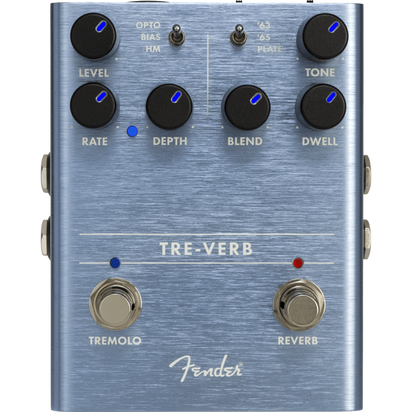 Il suono del vero effetto Tremolo e Reverb per amplificatore Fender è assolutamente inconfondibile. Questi lussureggianti e dinamici effetti per amplificatore hanno ispirato interi generi musicali. Il pedale Tre-Verb mette a portata di piede gli effetti Tremolo e Reverb indipendenti in un pedale compatto e facile da usare. Abbiamo incluso le sonorizzazioni di riverbero classiche basate sulle nostre rinomate unità di riverbero a molla del 1963 e 1965 e diverse modalità tremolo per essere certi che possiate ottenere il suono esatto di cui avete bisogno per la vostra musica. Una suite completa di controlli per modellare il timbro, compreso il tap tempo per l'effetto tremolo, rendono questo pedale sonoramente flessibile, mentre gli ingressi e le uscite stereo assicurano una grande facilità di connessione a qualunque pedaliera o amplificatore.