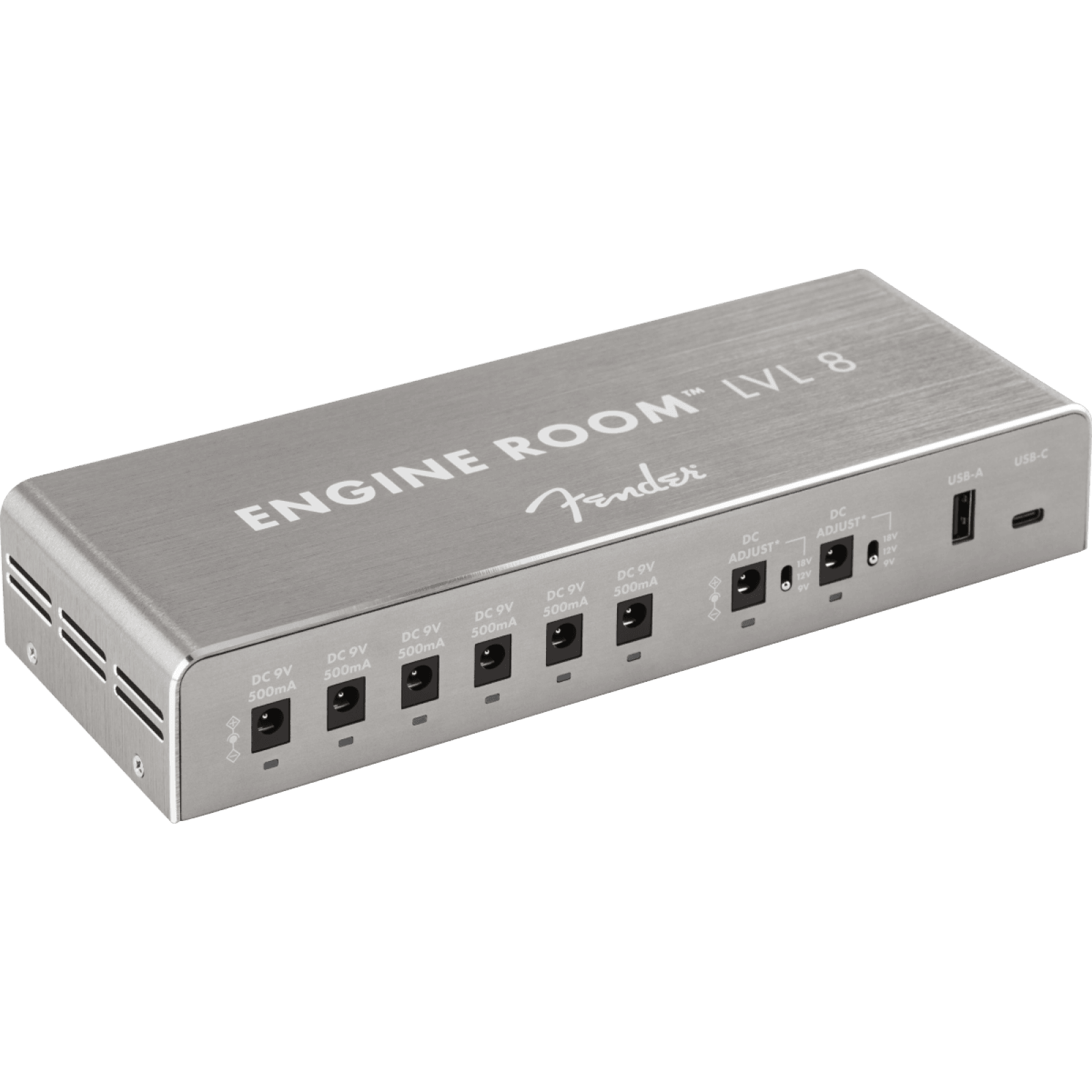 I pedali hanno bisogno di un'alimentazione isolata pulita e l'alimentatore Fender Engine Room® LVL8 è in grado di svolgere il compito. Dotato di otto prese di alimentazione isolate a terra, (6) sono in grado di fornire 9 V CC a 500 mA mentre (2) prese aggiuntive forniscono tensione commutabile (9 V/12 V/18 V) tramite interruttore a levetta o scorrevole a 3 vie. Perfetto per i musicisti di performance o in studio e può essere collegato a margherita con il nostro LVL12 per i musicisti che cercano una maggiore varietà tonale.