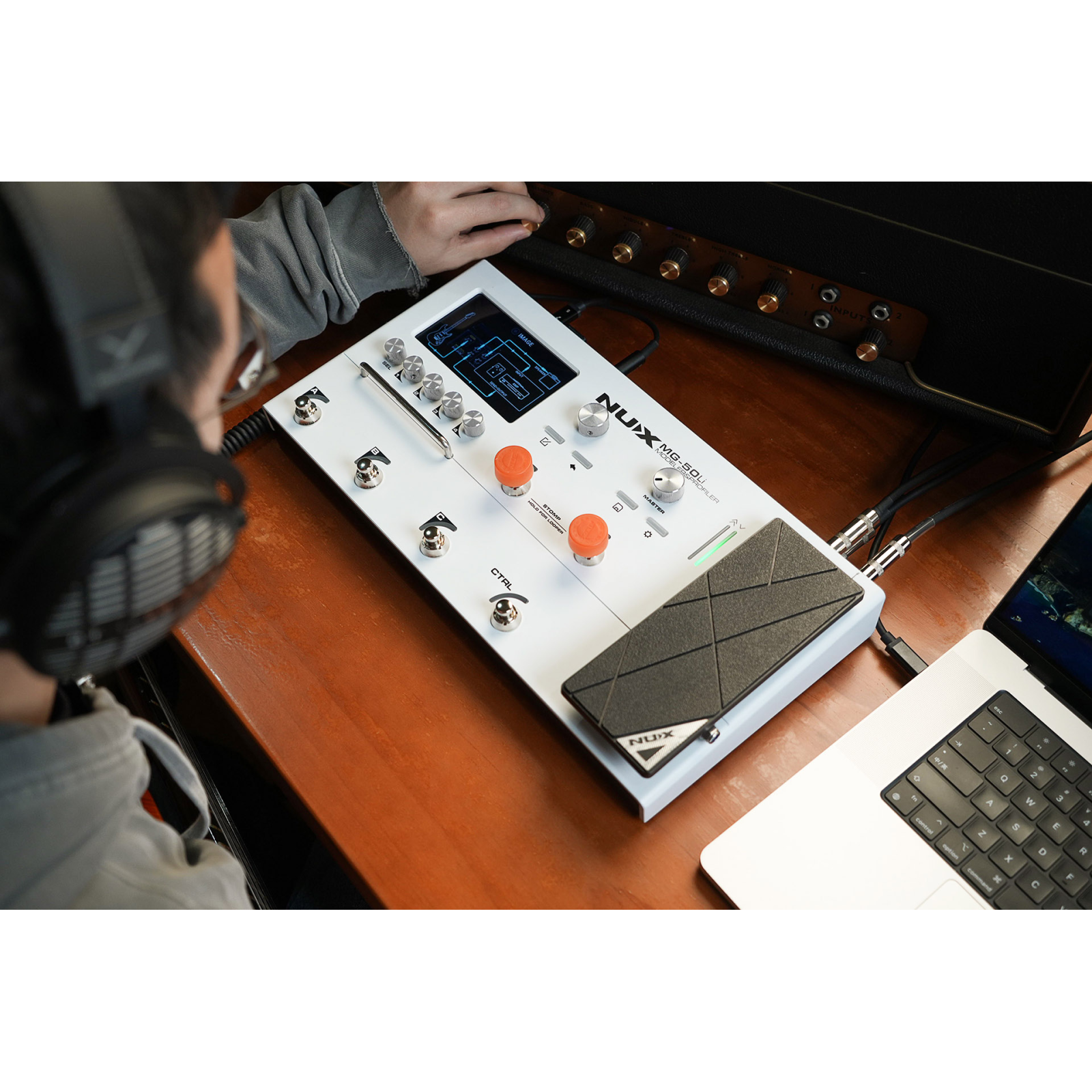 Comprimere il testoMG-50Li è dotato dell'iconico TS/AC-4K Amp Modeling (algoritmo di modellazione fisica White-box), che è due volte più complesso rispetto a quello presente nelle versioni precedenti. Questo ha portato NUX a progettare una nuova piattaforma hardware con tre DSP: uno dedicato alla gestione di tutti gli effetti, un altro all'esecuzione dell'algoritmo di modellazione dell'amplificatore e il terzo al supporto della funzionalità di simulazione dell'amplificatore split.