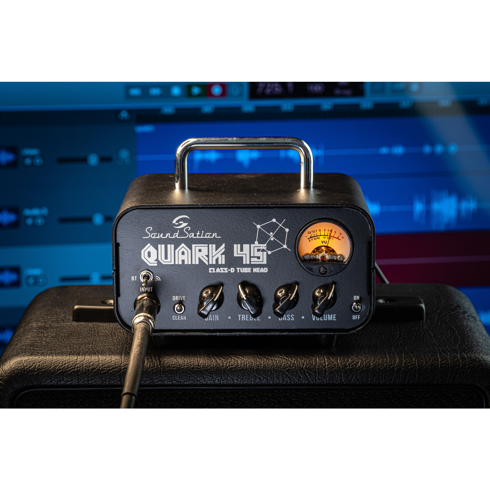 Ultra leggera, ultra compatta e potente: QUARK 45 sprigiona i suoi 45W RMS grazie al connubio vincente tra l'amplificatore in classe D e il preamp valvolare/FET. Niente suoni artificiali, sterili o zanzarosi: QUARK 45 spazia dal pulito cristallino a un distorto aggressivo, articolato e corposo, ideale per il blues, il rock e l'hard rock.