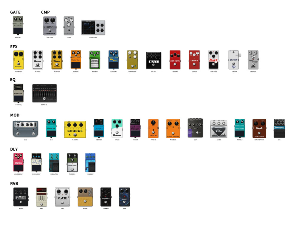 Effetti: GATE, CMP, EFX, EQ, MOD, DLY, RVB