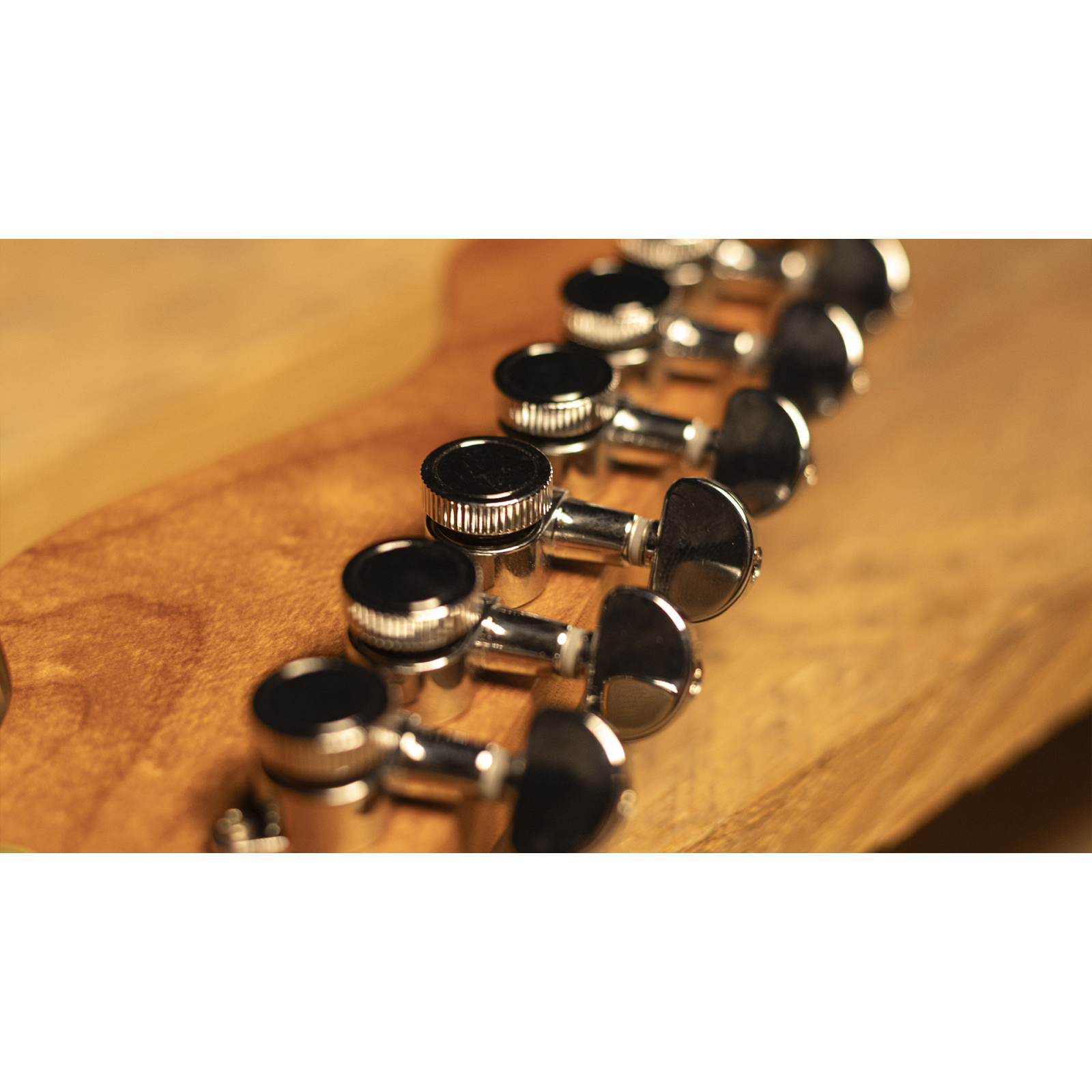 La serie RIDER BLEND unisce un carattere moderno a finiture retro, per creare un equilibrio perfetto tra contemporaneità e tradizione. Il corpo in ontano e il manico/tastiera in acero roasted, la configurazione 2 single coil + humbucker coperto splittabile targata Wilkinson, le meccaniche autobloccanti e il vintage tremolo anch'esso Wilkinson conferiscono grande valore a uno strumento subito riconoscibile.