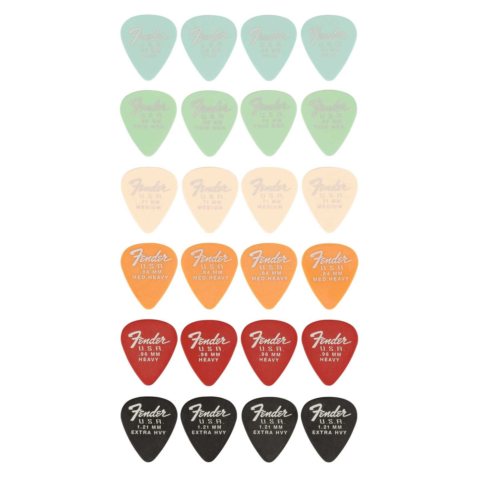 Questo plettro resistente è realizzato in Delrin estruso, in diversi colori classici Fender, con una finitura opaca per una migliore presa. Di lunga durata e durevole, Delrin ha una sensazione più rigida rispetto alla celluloide, che dona un attacco forte e ben definito ad ogni colpo. La forma 351, la nostra più popolare, funziona bene per qualsiasi genere musicale e ha un aspetto tradizionale. Collegandosi al nostro passato, questi plettri sono disponibili negli indicatori che usavamo alla fine degli anni '70.