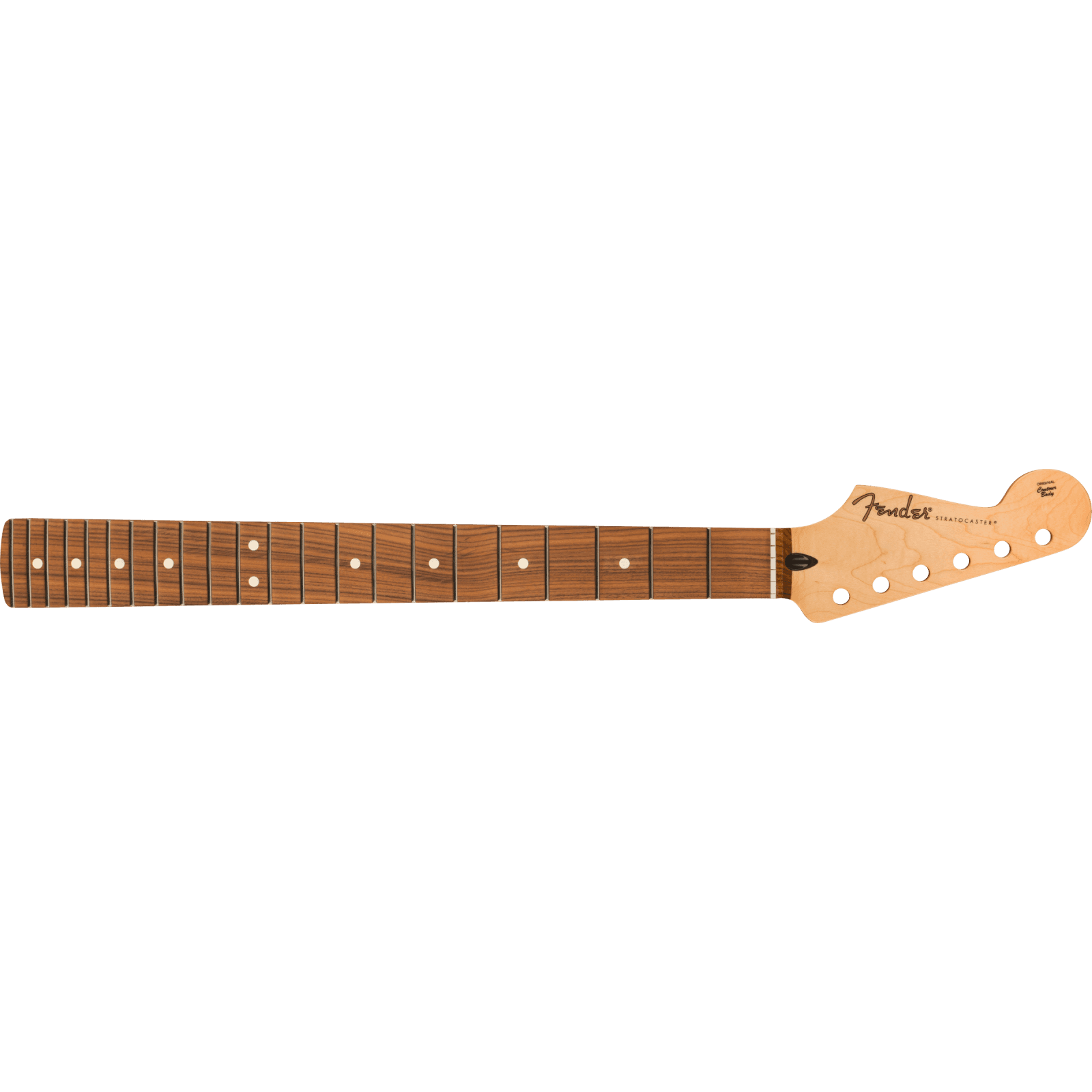 Capovolgilo con un manico Player Series con paletta rovesciata. Realizzato nel nostro stabilimento di produzione di Ensenada, in Messico, questo manico per chitarra Fender Player Series Stratocaster® originale presenta un comodo profilo a "C moderno" e tastiera in acero o pau ferro con raggio di 9,5" con 22 tasti jumbo medi e paletta rovesciata.