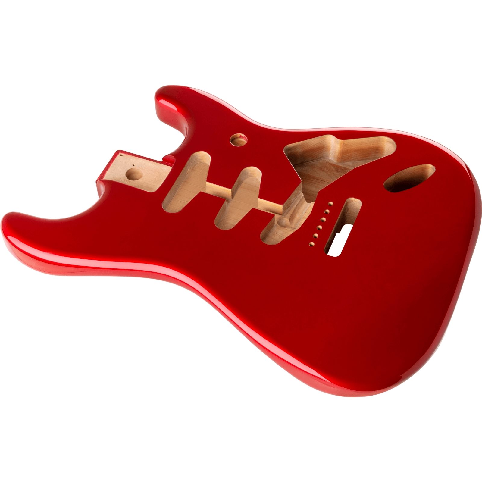 Body autentico chitarra Fender Stratocaster® in ontano instradato per una configurazione pickup SSS tradizionale e preforato con sei fori per viti per ponte in stile vintage con montaggio largo 2-7 / 32". Finitura in poliestere lucido resistente. Realizzato presso lo stabilimento di Fender di Ensenada, Messico.