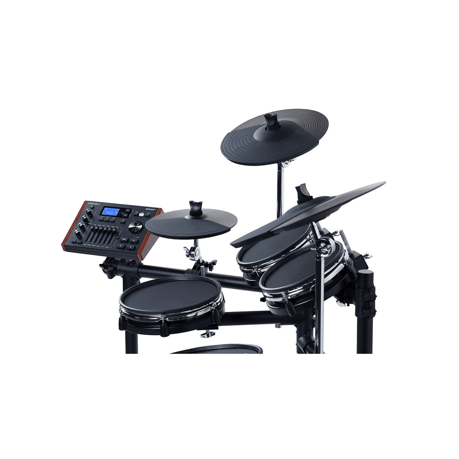 Pad e Pedali per la batteria:1 Snare MESH a 2 zone, 3 Tom MESH pad a 2zone , 1 Crash con Choke a 2 zone , 1 Ride con Choke a 3 zone, 1 Hi-hat a 2 zone (Controllo continuo), Pedale Hi-hat , 1 Trigger Kick MESH.