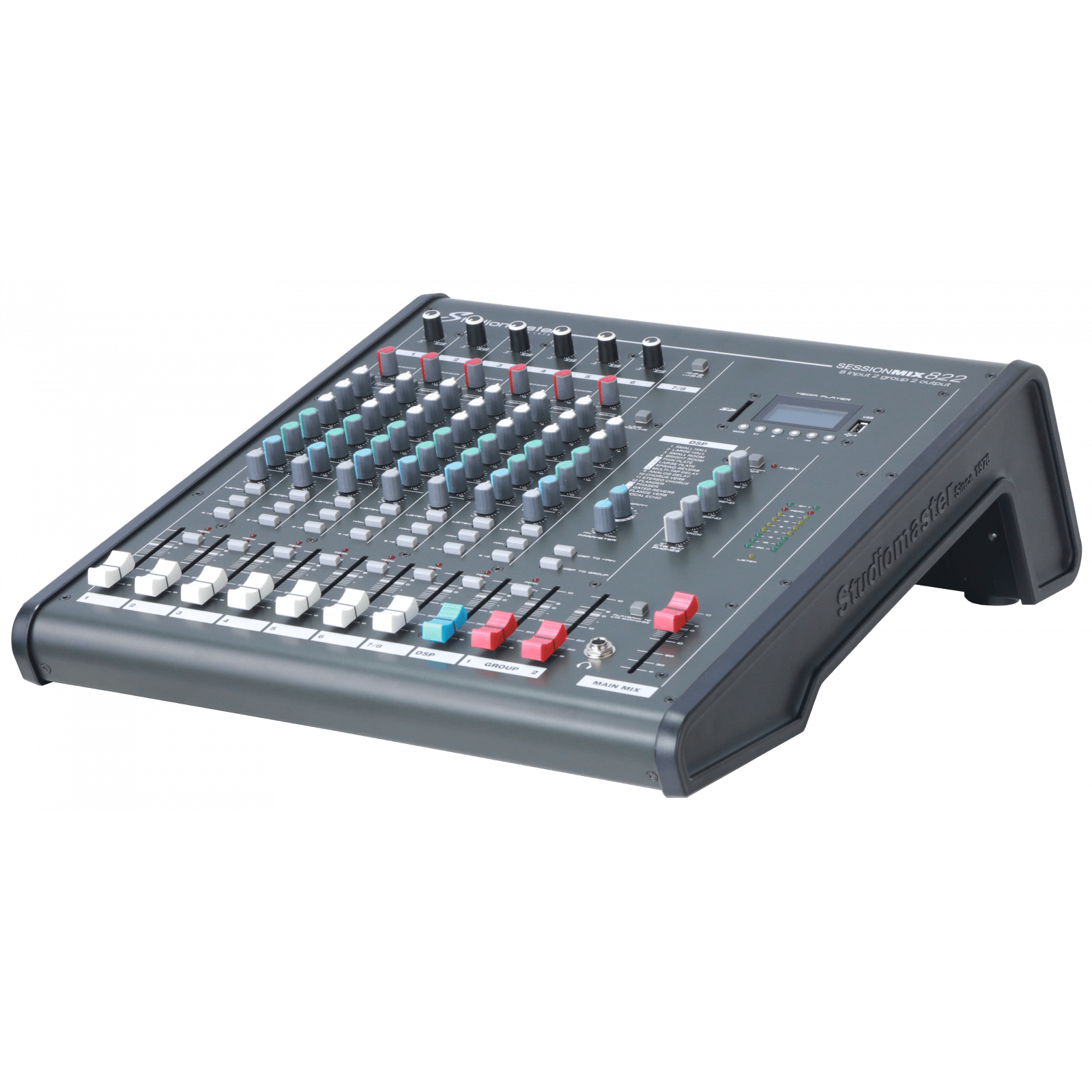 Partendo dal nostro popolare CLUBXS8+, abbiamo migliorato lo stile del design e aggiunto un sottogruppo stereo. Il SessionMix 822 offre 6 canali microfonici e 1 canale stereo in un design compatto e poco ingombrante. Grazie alle funzioni disponibili, come la registrazione via USB o la possibilità di riproduzione via Bluetooth, le applicazioni sono molteplici, sia che si tratti di una band di piccole o medie dimensioni che di un'installazione in cui il numero di canali è importante.