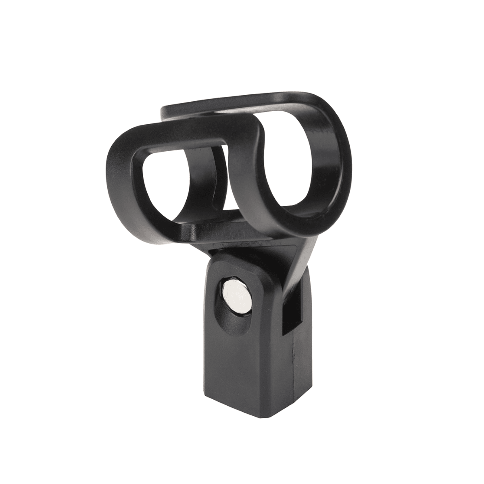 MH-WM è un reggimicrofono adatto per la maggior parte dei radiomicrofoni a mano e microfoni a filo di grandezza superiore rispetto allo standard. Con angolazione regolabile, è costruito in materiale plastico ABS resistente. Include la filettatura per l'aggancio all'asta microfonica.