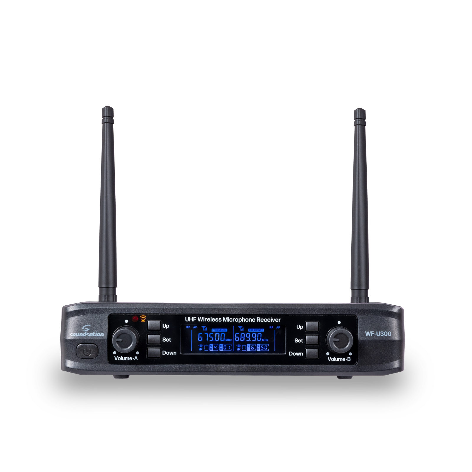 Il WF-U300 è un sistema microfonico wireless UHF a doppio canale con 300 canali ciascuno. Le sue caratteristiche principali sono l'affidabilità, la qualità audio e l'estrema semplicità d'uso. È stato progettato per tutti quei professionisti che necessitano di uno strumento pronto all'uso, sempre.