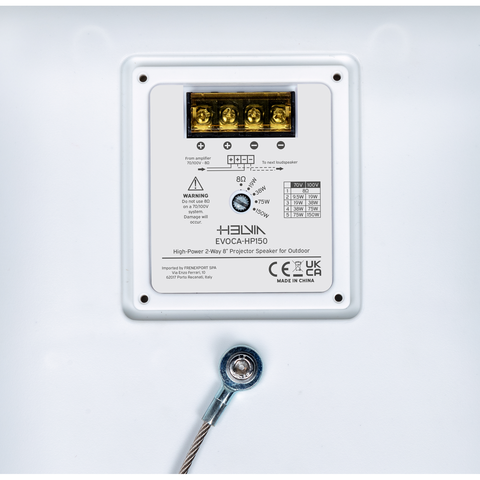 Sebbene questi proiettori siano provvisti internamente di trasformatori di linea a 70V e 100V con 5 potenze selezionabili, possono tranquillamente essere pilotati da finali a bassa impedenza (8ohm).