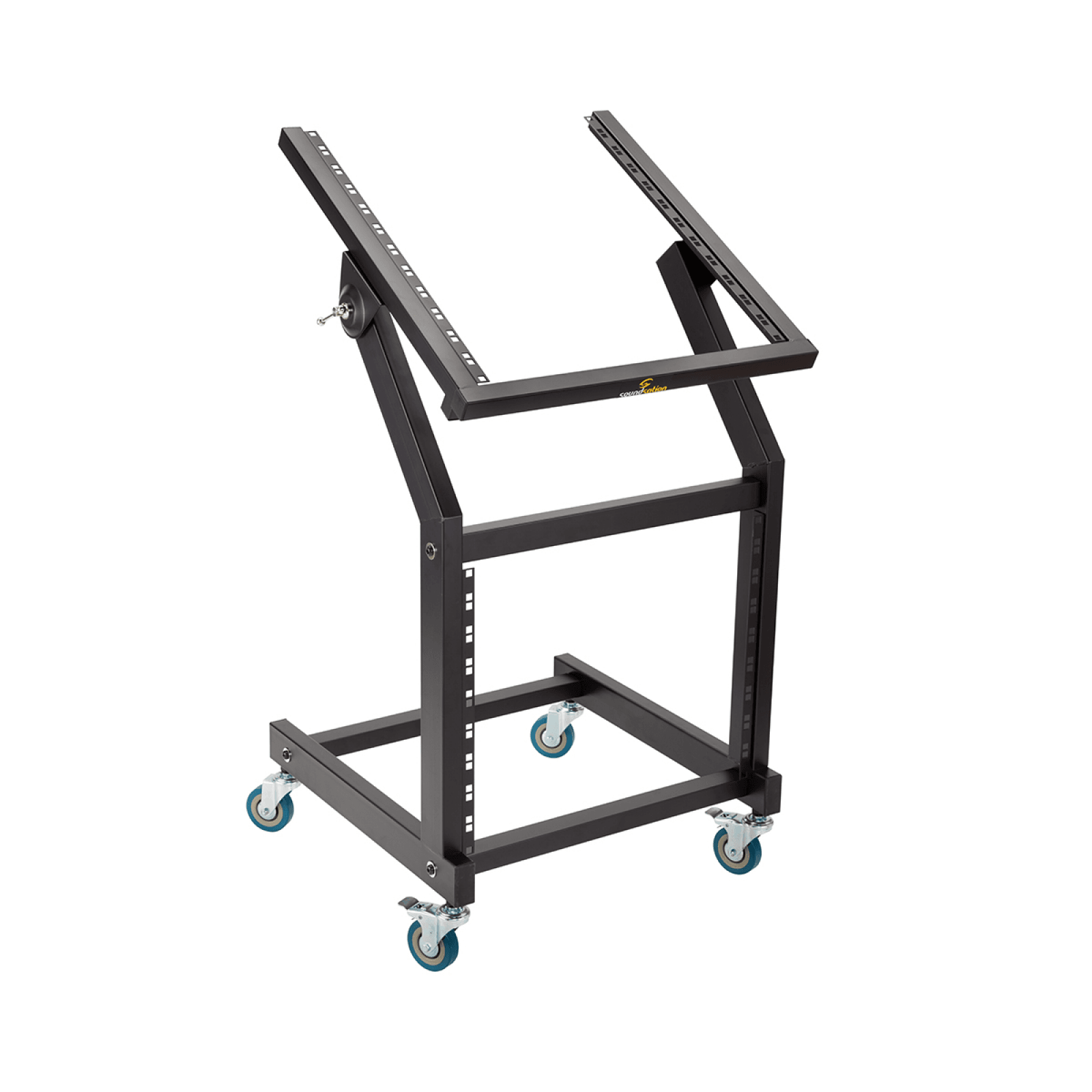 I supporti Rack serie CRACK-100 sono costruiti in acciaio e permettono di alloggiare varie apparecchiature in maniera semplice e sicura. E' dotato di alloggiamenti verticali e orizzontali, utili per avere un facile accesso alle apparecchiature come i mixer. Sono dotati di 4 ruote con blocco. Ideali per installazioni fisse, studi di registrazione e palchi.