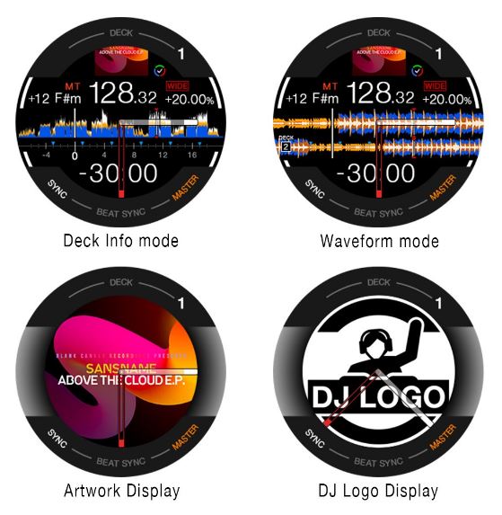 Customize the information you see on the jogs so there’s no need to take your eyes off the decks. Choose from 4 modes, some of which show 3 Band Waveforms (rekordbox only), and keep an eye on Mix Point Link and rekordbox vocal position analysis information, as well as Performance Pad status.