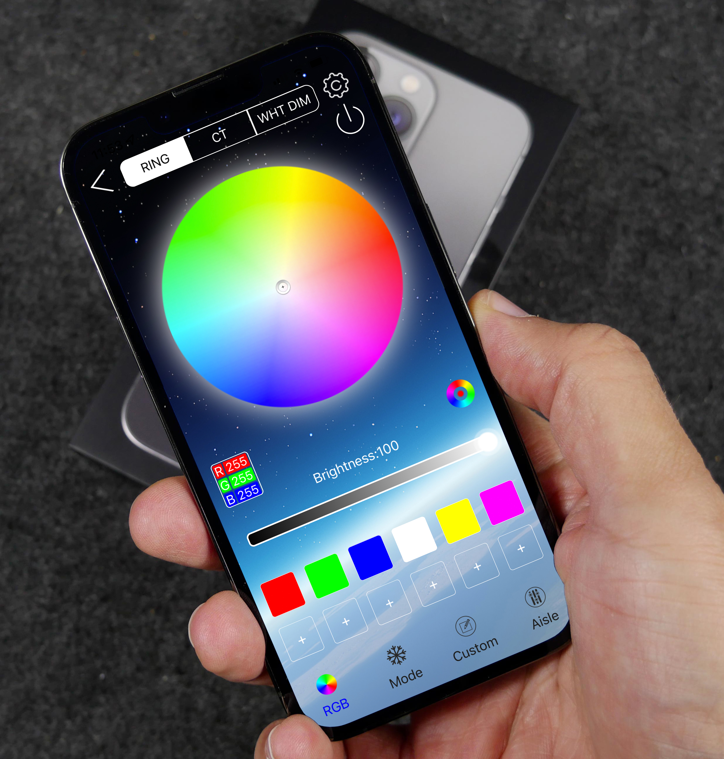 Baste attivare la modalità Wi-Fi del Portrait Q-Air e lo si trasforma in un piccolo router Wi-Fi controllabile da App gratuita Led Lamp per dispositivi iOS® e Android®. Il vostro dispositivo mobile diventa una vera e proria centralina DMX e potete controllare dimmer, colori, creare dei preset e tanto altro.