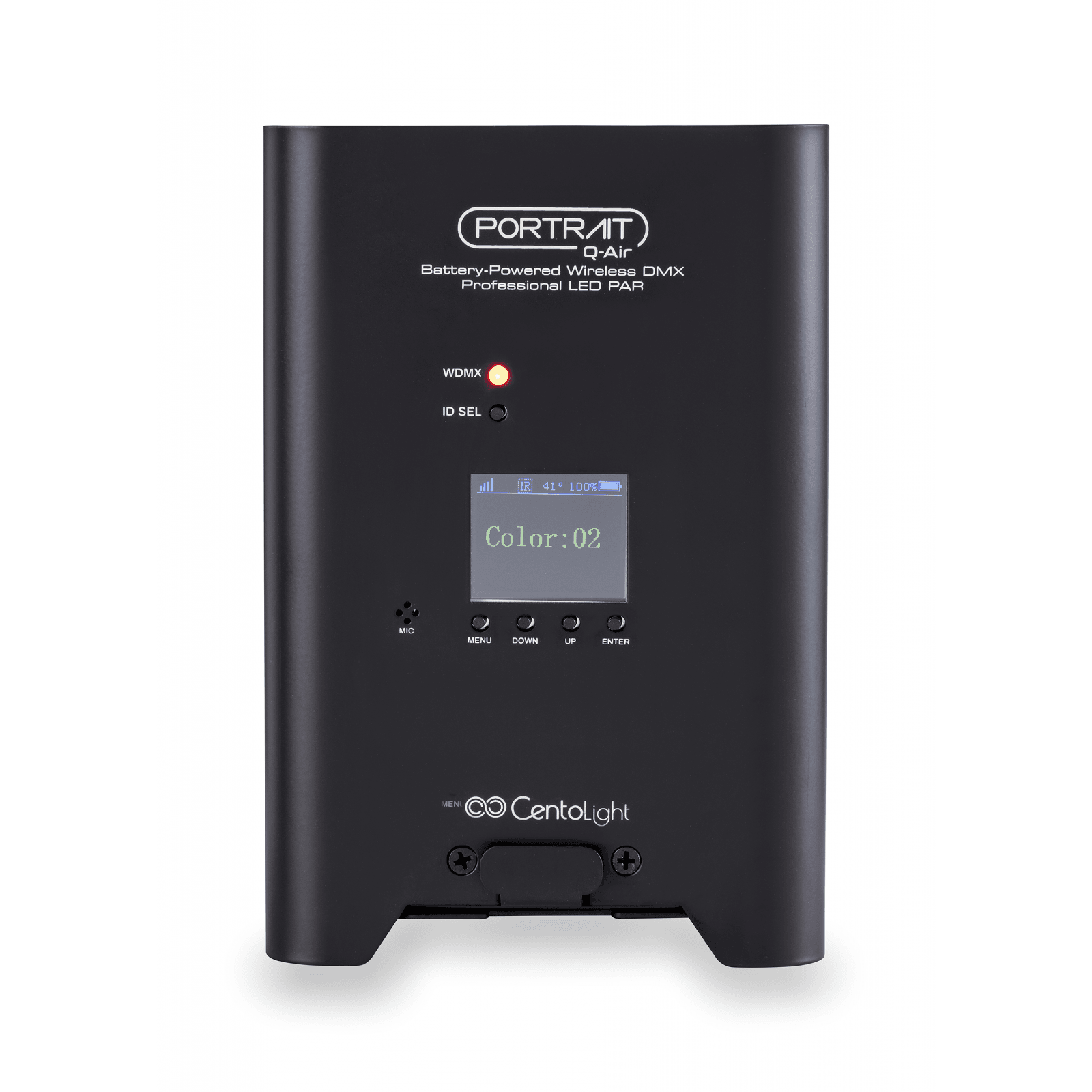 PORTRAIT Q-Air è un PAR alimentato a batteria (o alimentato a corrente), appositamente progettato per applicazioni di noleggio. Può essere controllato facilmente scegliendo tra telecomando IR, connessione DMX-512 cablata, DMX wireless (usando PRT0889, ricetrasmettitore DMX wireless a 2,4 GHz ) e Wi-Fi utilizzando l’APP gratuita LED LAMP per dispositivi iOS® e Android®.