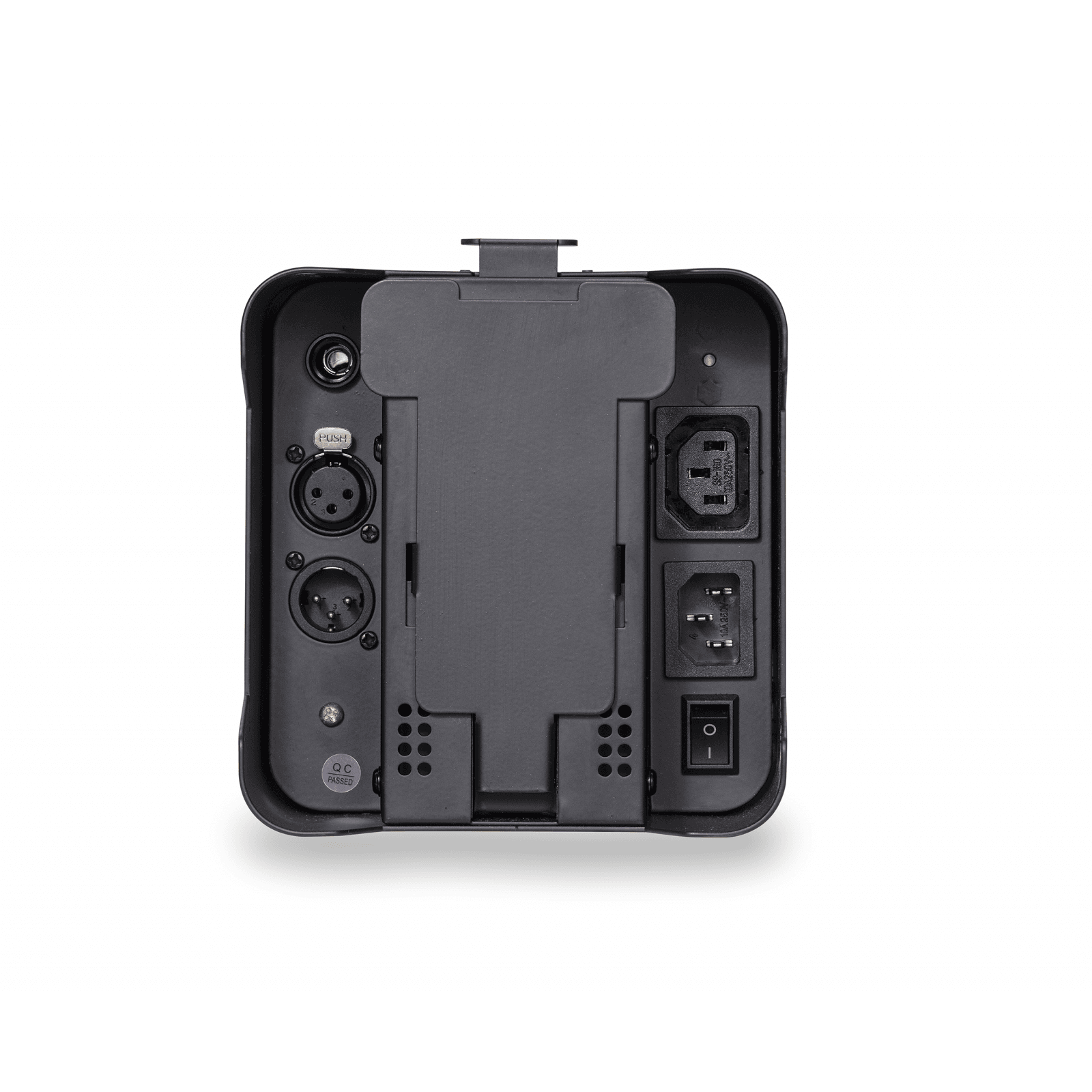La batteria al litio ad alta efficienza garantisce una carica completa da zero entro circa 5 ore, e una durata di lavoro che varia da 5 ore (modalità full color) a 12 ore (modalità single color). Il telecomando a infrarossi consente il controllo remoto delle funzioni principali senza l’uso del DMX.