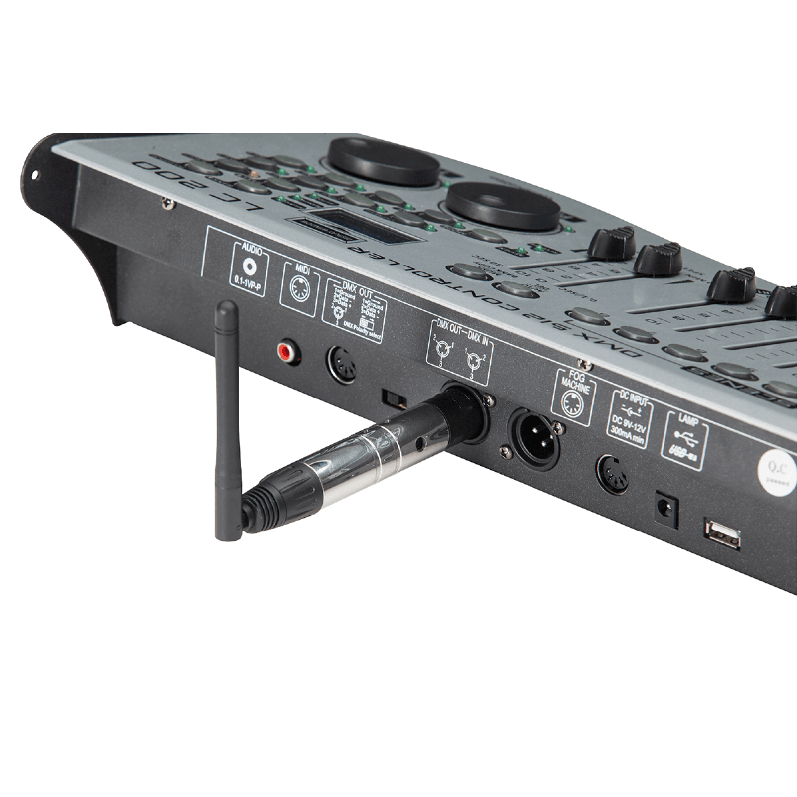 Il WDX-100 permette di controllare qualsiasi faro dotato di interfaccia DMX512 senza l'utilizzo di cavi DMX. Il sistema opera sulla banda compresa tra 2.400 - 2.525 GHz (licence-free) e permette di controllare fino ad un massimo di 7 fari per un totale di 126 canali DMX. Installarlo e configurarlo è facile ed immediato. Il dispositivo necessita di alimentazione esterna (in dotazione). Comprimere il testo