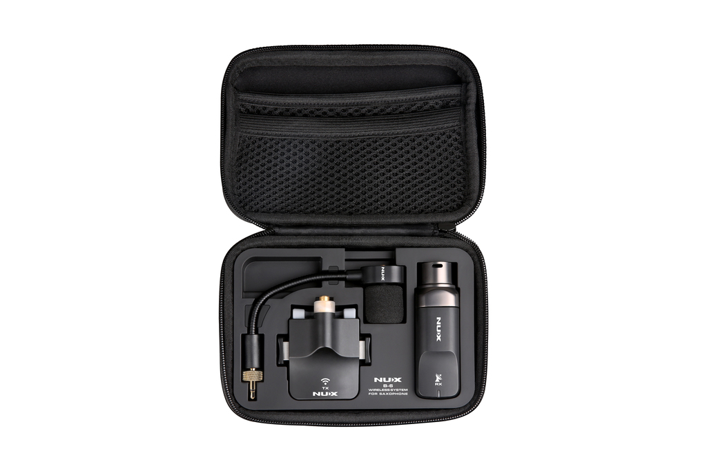 Il sistema wireless NUX B-6 permette ai sassofonisti di esibirsi al meglio senza correre il rischio di allontanarsi troppo dal microfono.