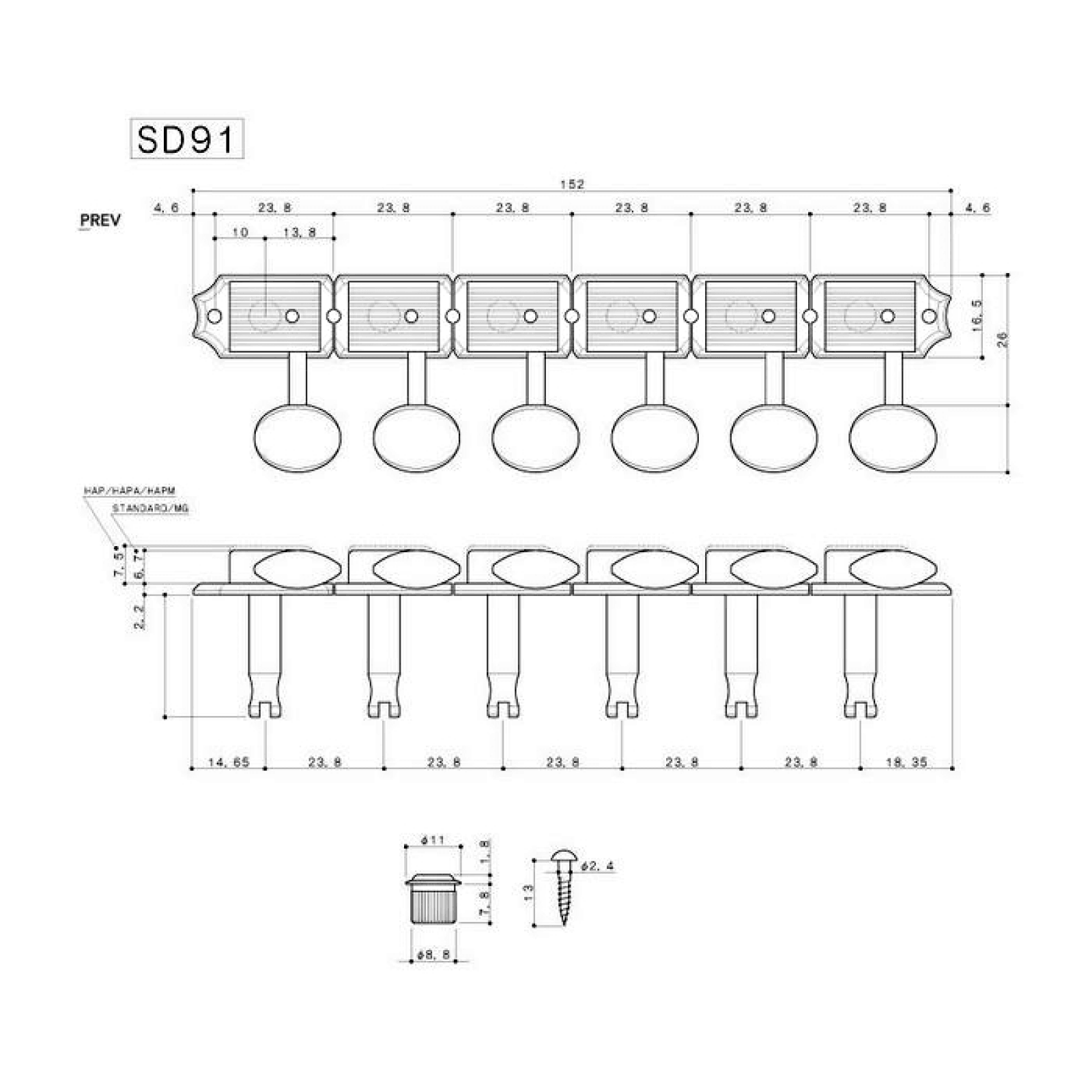 Meccaniche per Chitarra Elettrica e Acustica, 6L in linea, Cromata