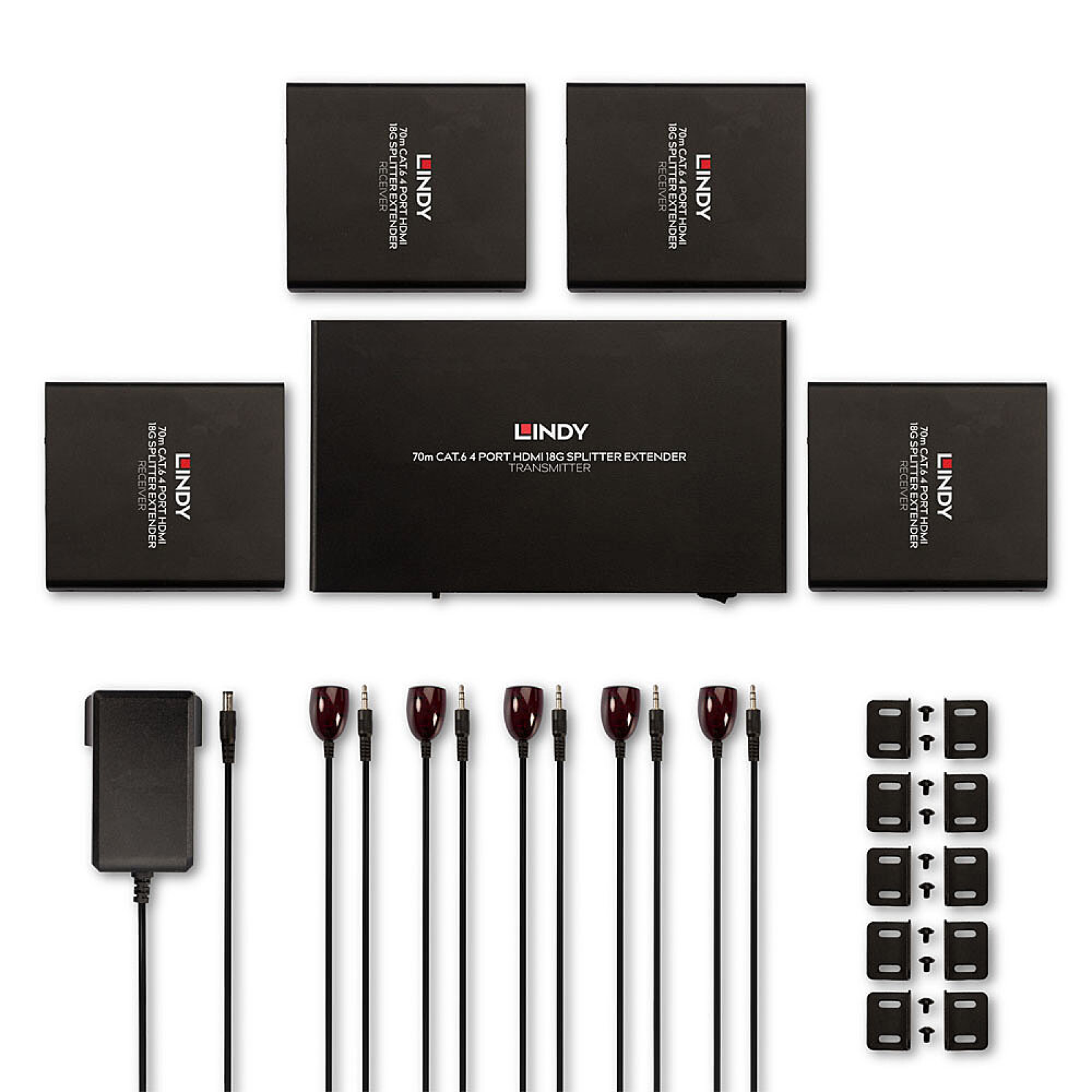 Lo Splitter Extender HDMI® 4K60 Cat.6 70m 4 porte di Lindy è una soluzione professionale e flessibile per la distribuzione di segnali HDMI® 4K a più schermi utilizzando cavi di rete Cat.6 standard.
