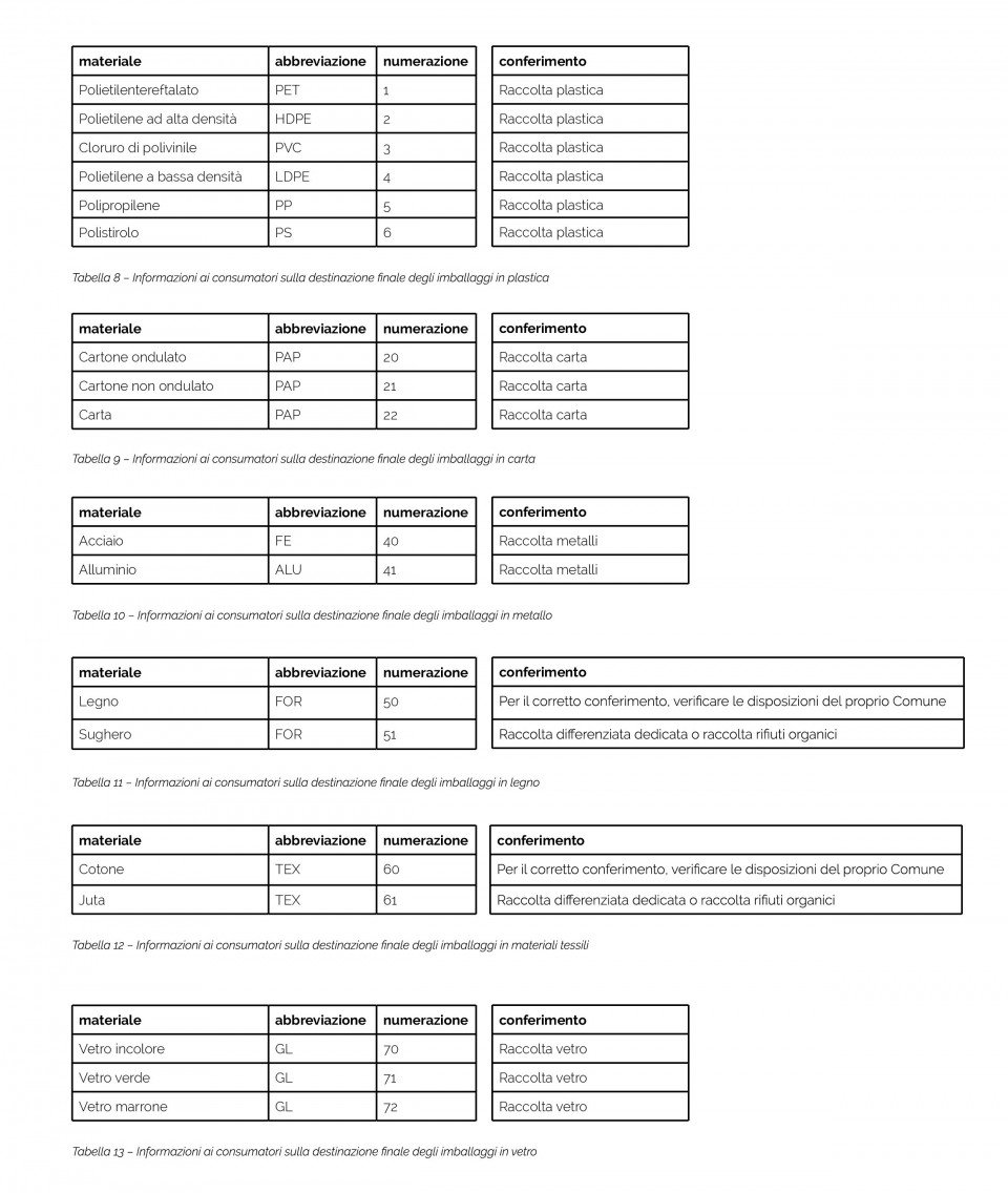 Informazioni per l'identificazione degli imballaggi dei prodotti e per il corretto conferimento alla raccolta differenziata.